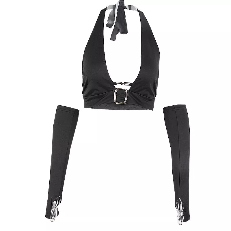 Cute Sexy Plaid Halter Slash Neck Hollow Long Sleeve Shirt Crop Top Punk Summer Aesthetic Casual E-Girl Kawaii Korean Japanese Harajuku