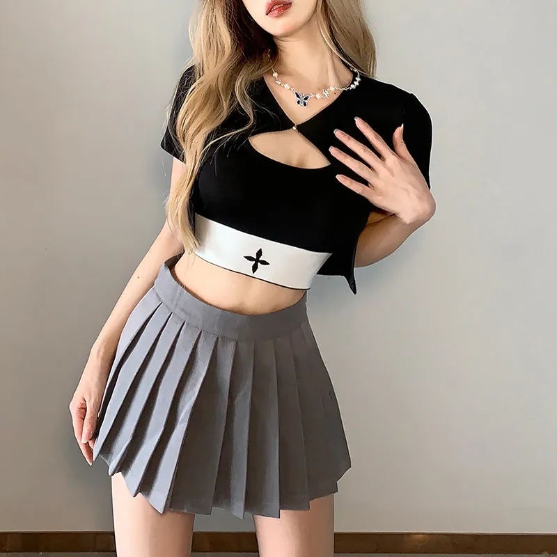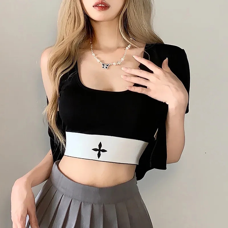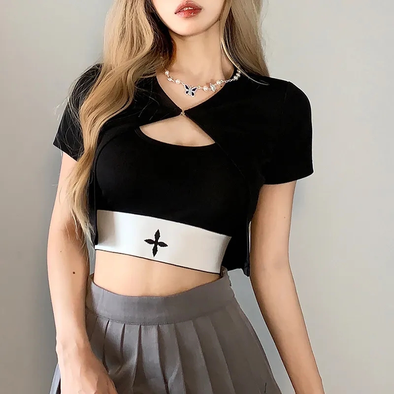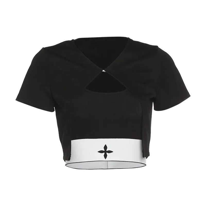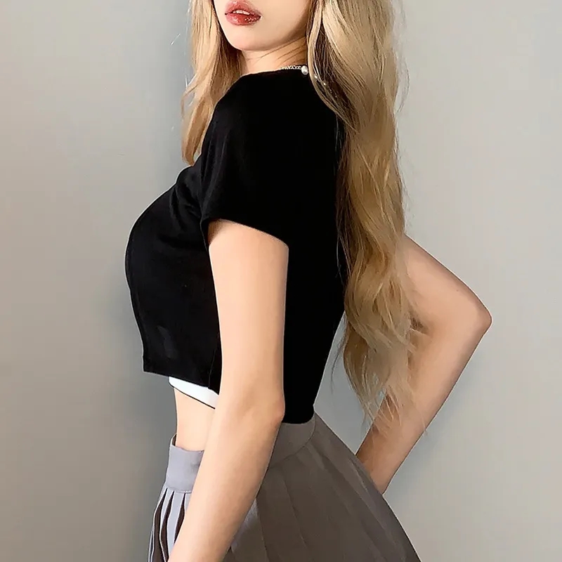Cute Sexy Lace Cross Ribbon Long Sleeve Shirt Top Aesthetic Casual Summer E-Girl Kawaii Korean Japanese Harajuku