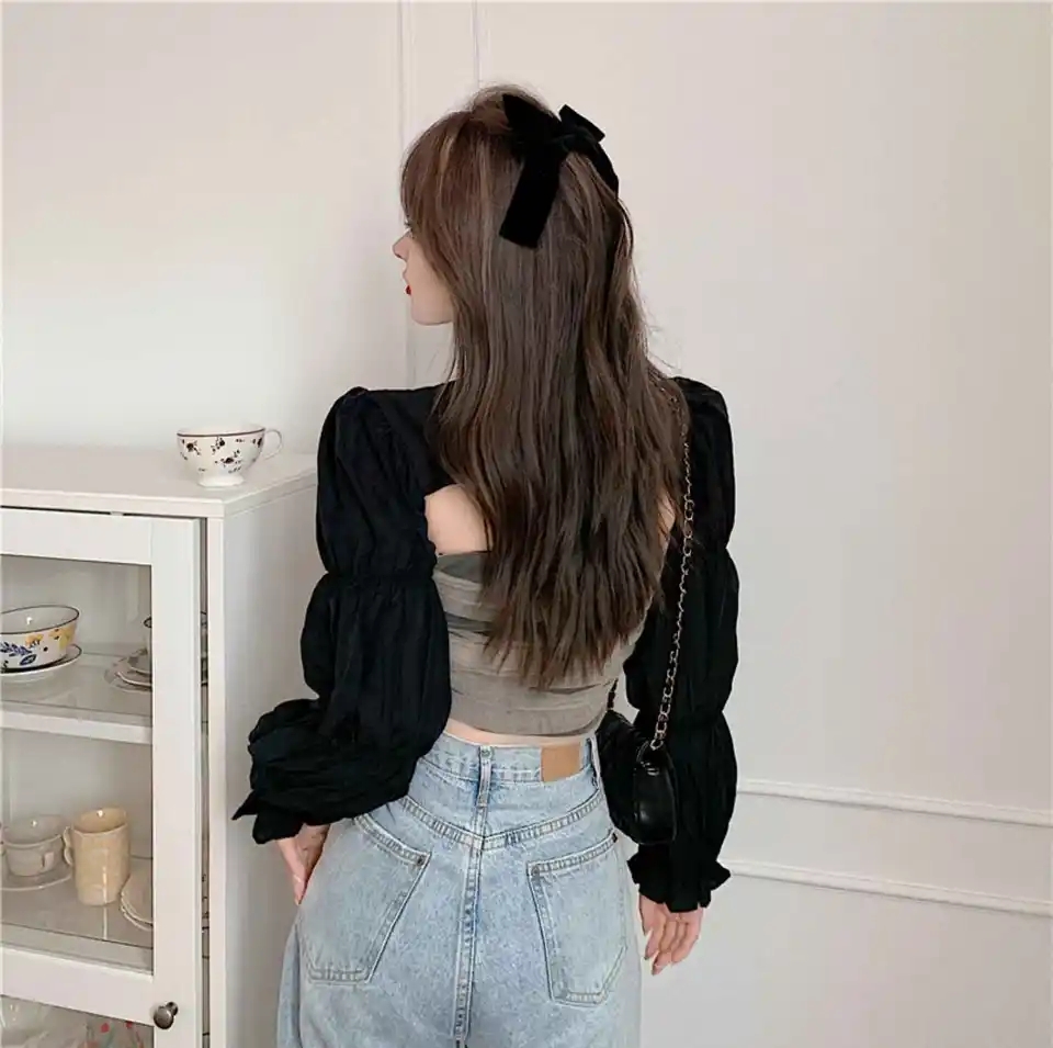 Cute Sexy 2pcs Moon Print Long Sleeve T-shirt Crop Top With Bra Camisole Summer Aesthetic Casual E-Girl Kawaii Korean Japanese Harajuku
