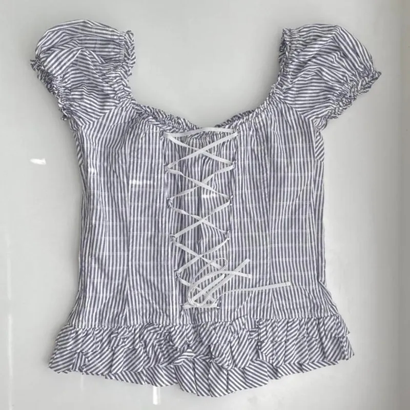Plaid Milkmaid Ruffle Puff Sleeve Top