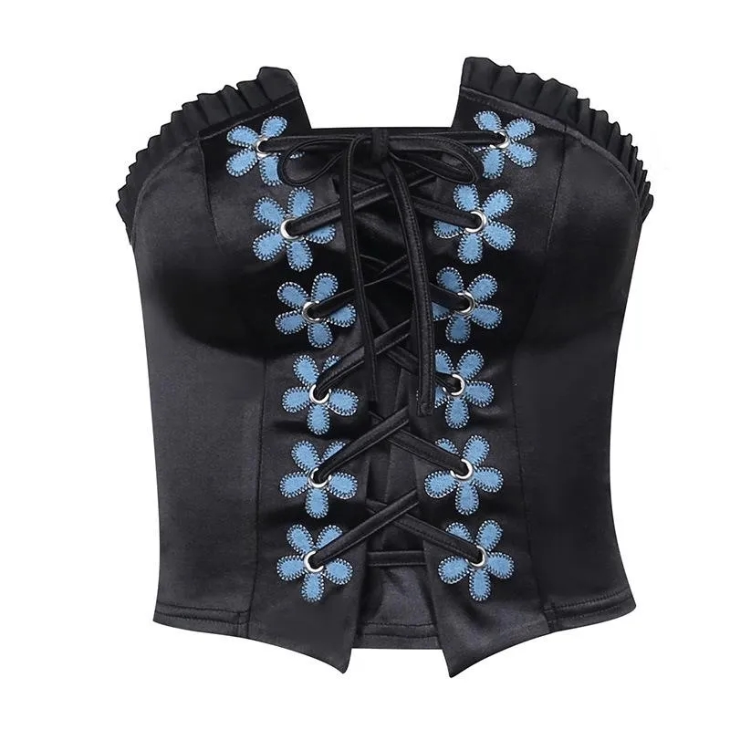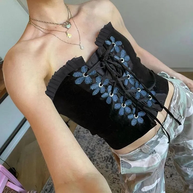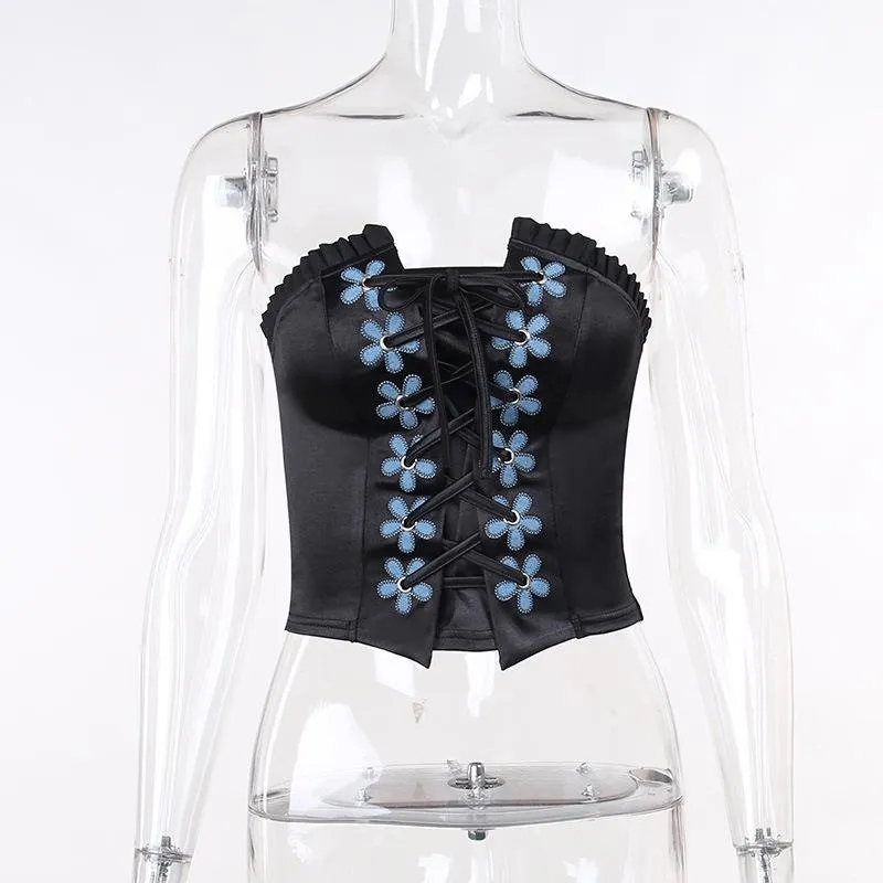 Sexy Lace Net Crop Top Tank Camisole Sleeveless Shirt Summer Causal E-Girl Kawaii Korean Japanese Harajuku Streetwear