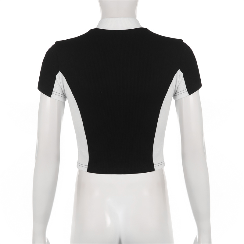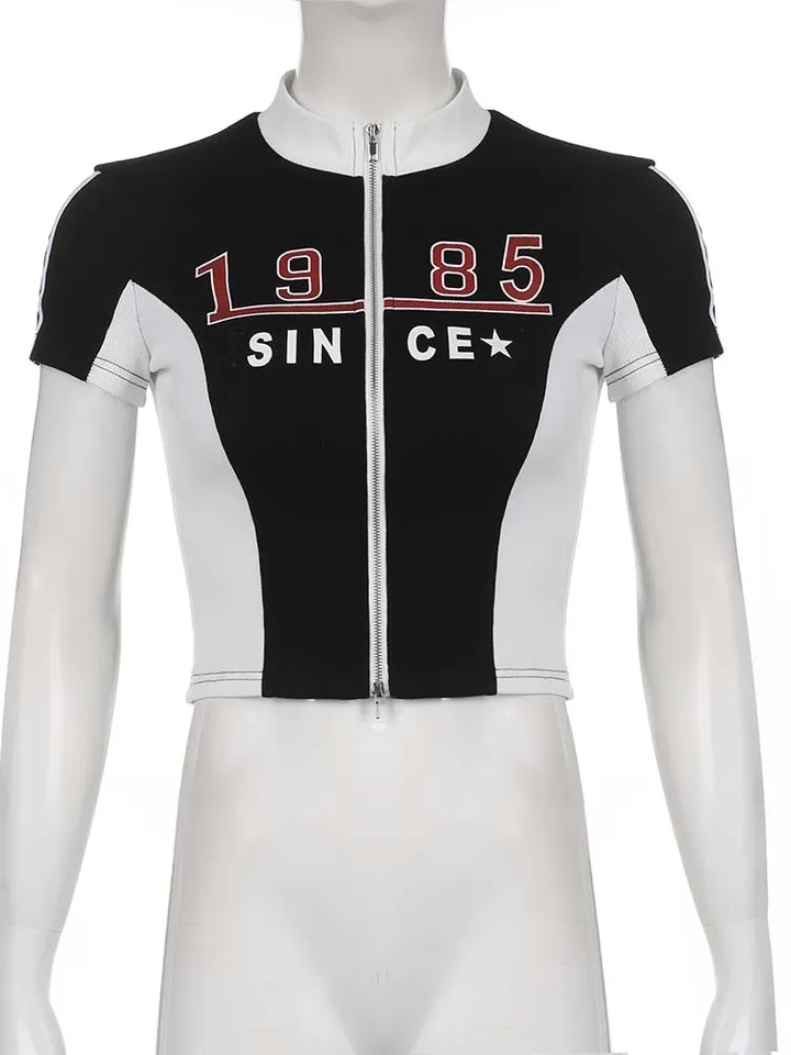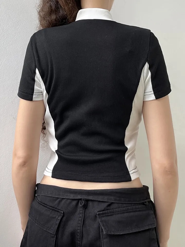 Retro Zipper Patchwork Crop Top