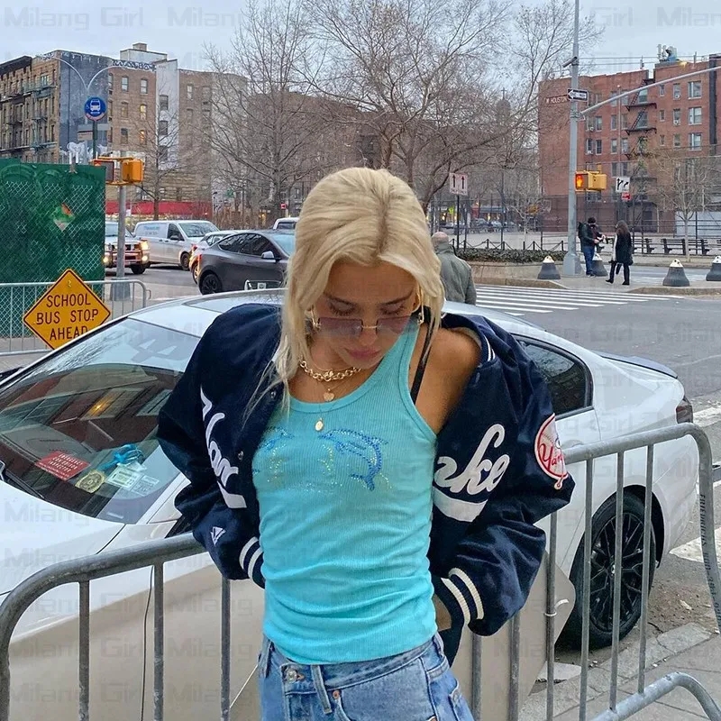 Blue Dolphin Rhinestone Tank Top