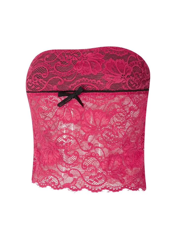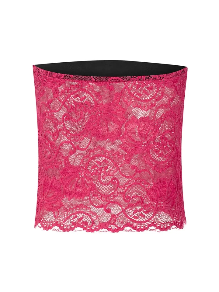 Hot Pink Lace Mesh Tube Top