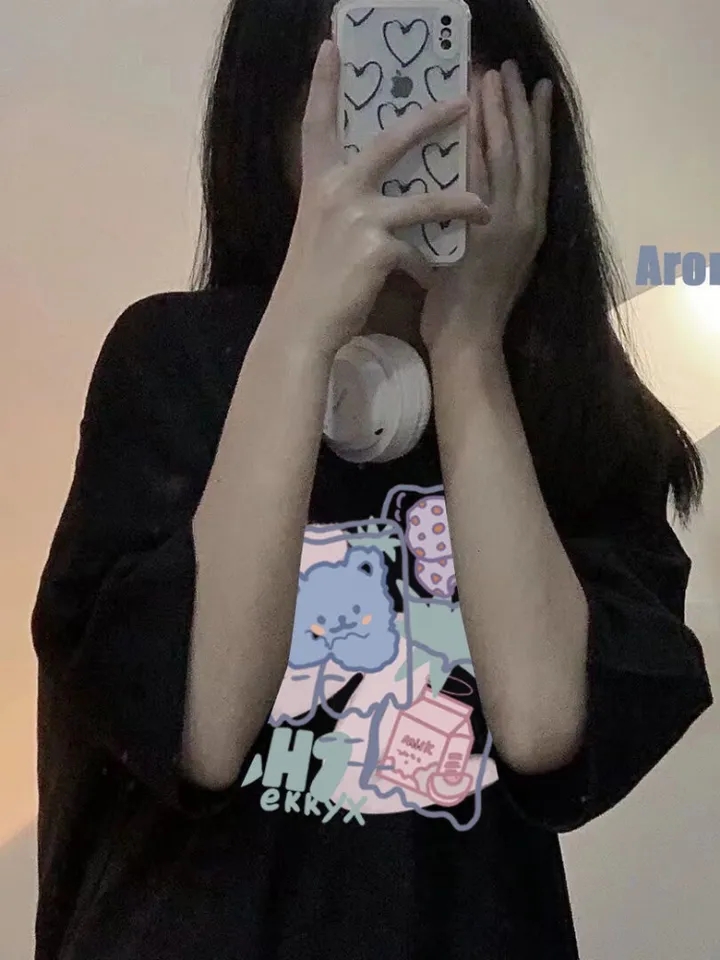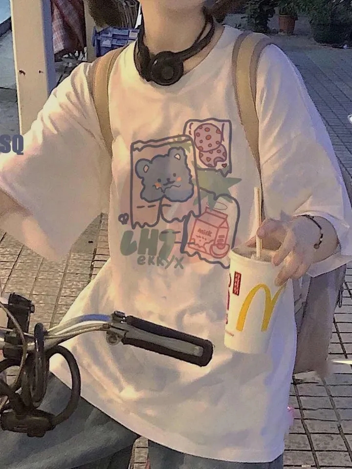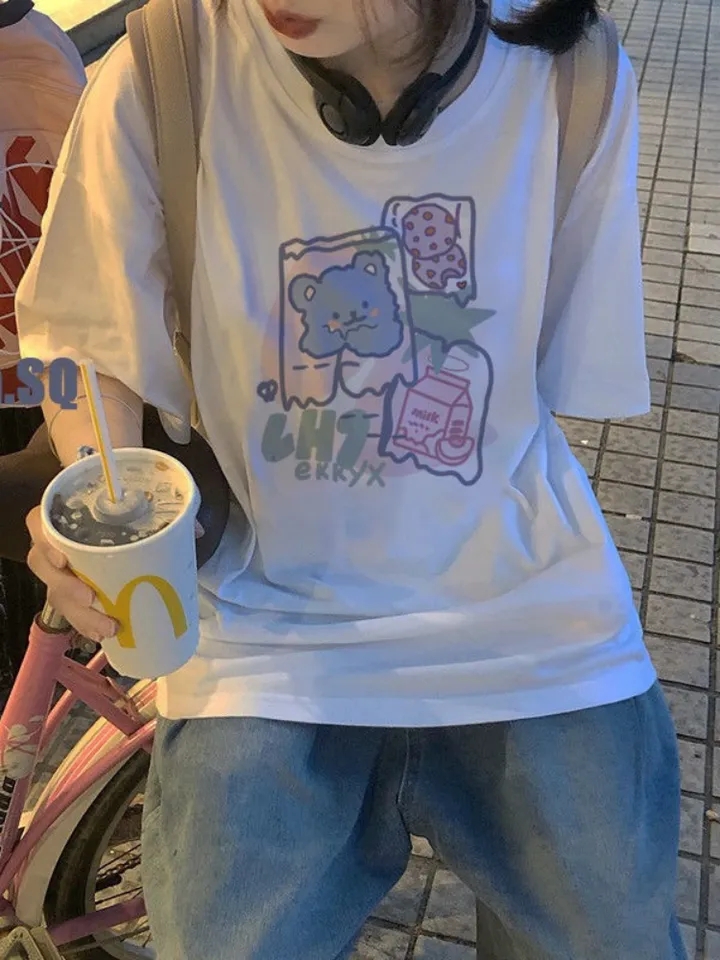 Cute Sweet Bear Cartoon Print Crop Top Short Sleeve Shirt Tee T-shirt E-Girl Kawaii Korean Japanese Harajuku Chinese Retro Streetwear Aesthetic