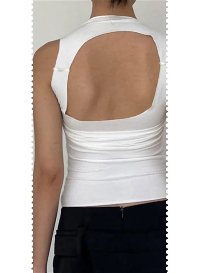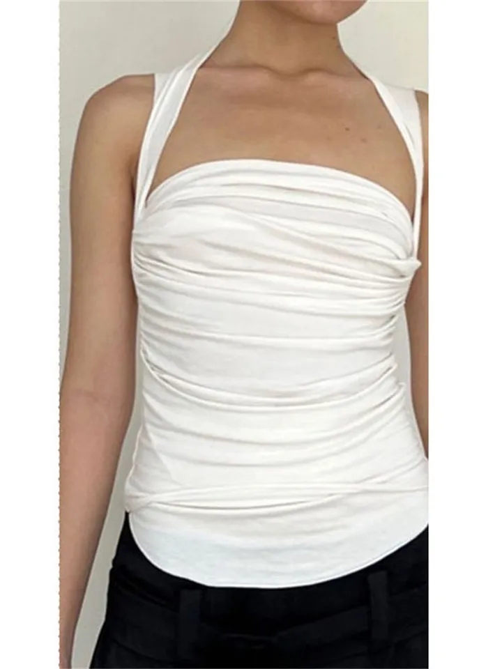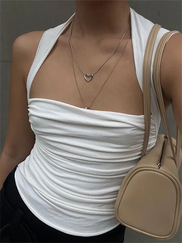 White Pleated Backless Tank Top