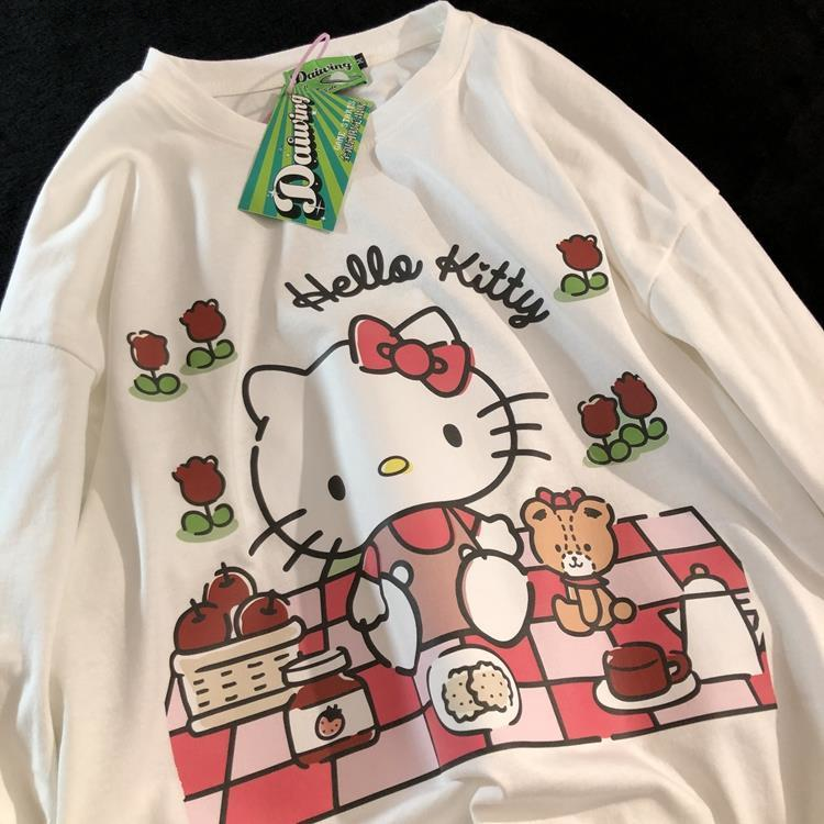 Cat Japanese Anime Print Long Sleeve Shirt