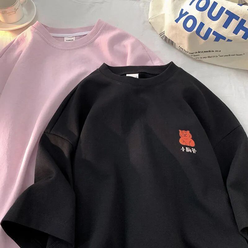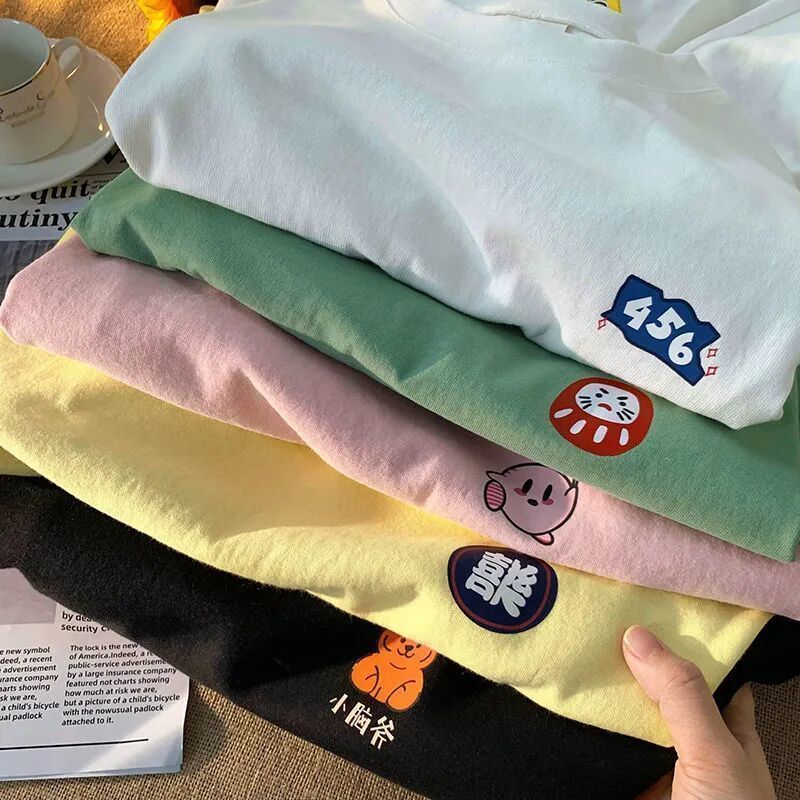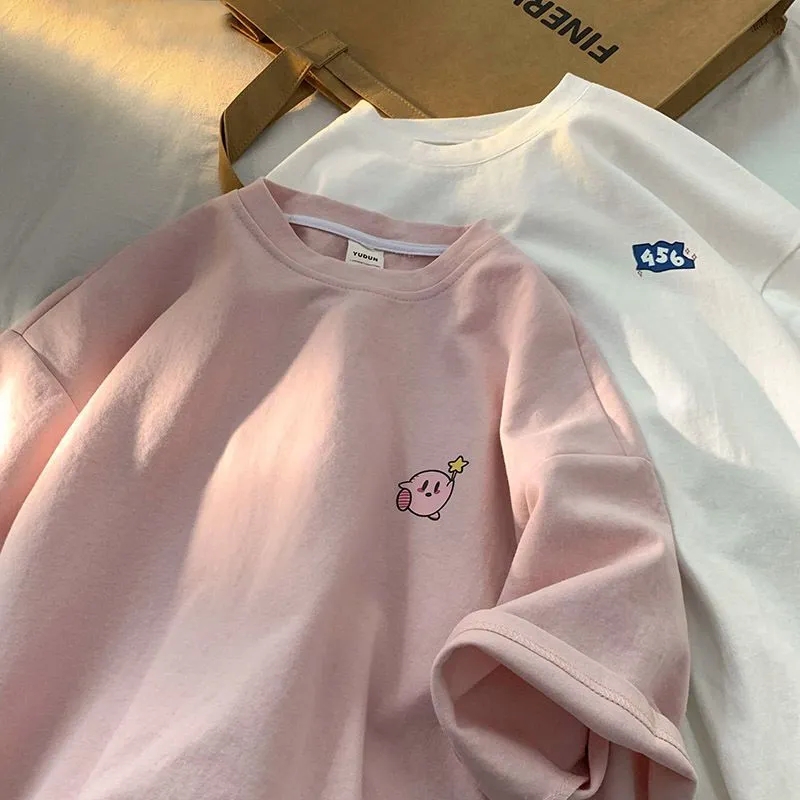Pink Japanese Anime Print Short Sleeve T-shirt