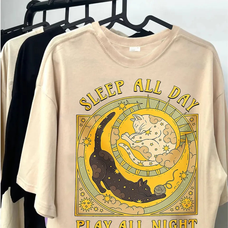 Cat Tarrot Card Print Short Sleeve T-shirt