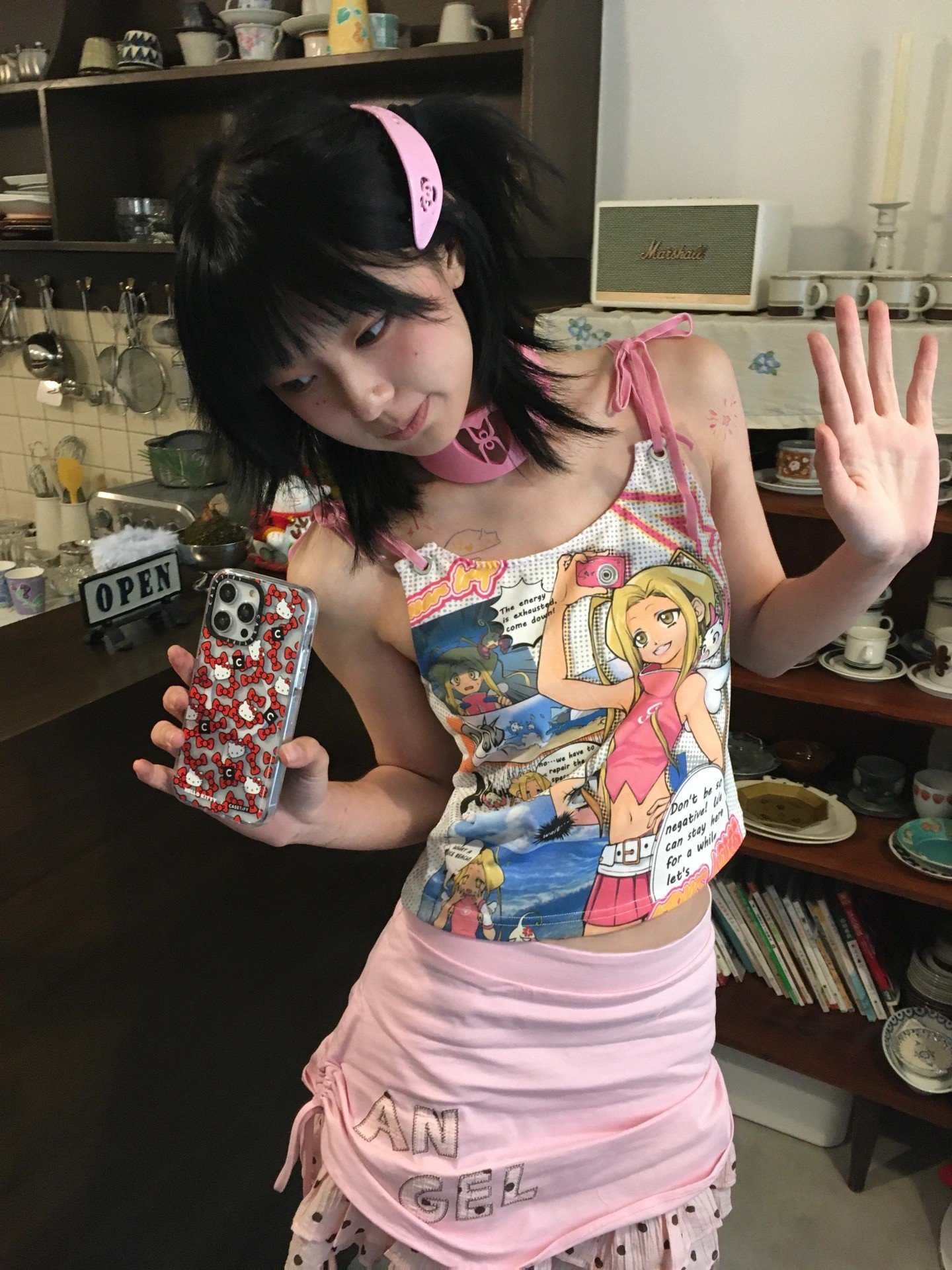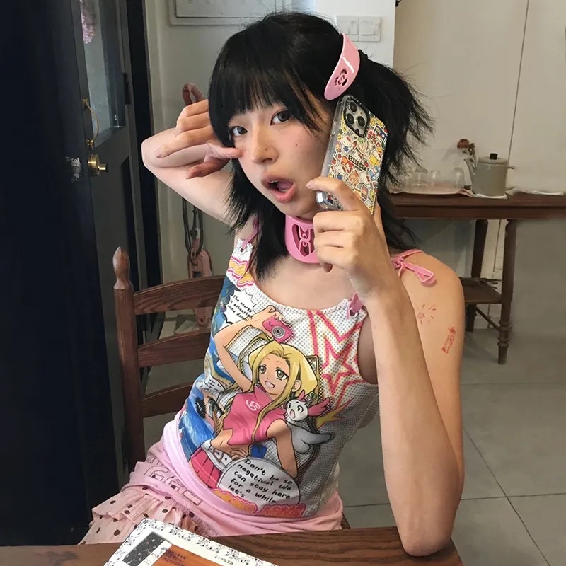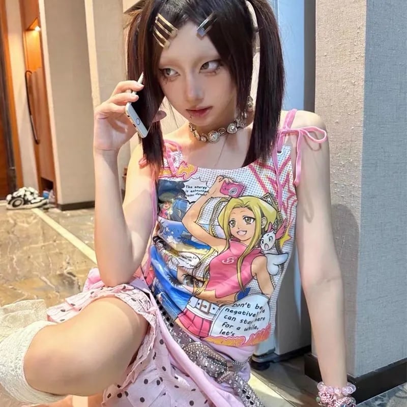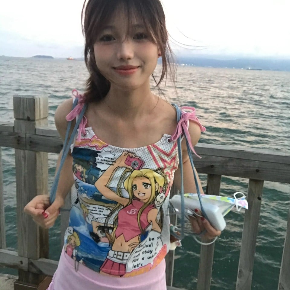 Japanese Anime Cartoon Print Oversize Long Sleeve Shirt
