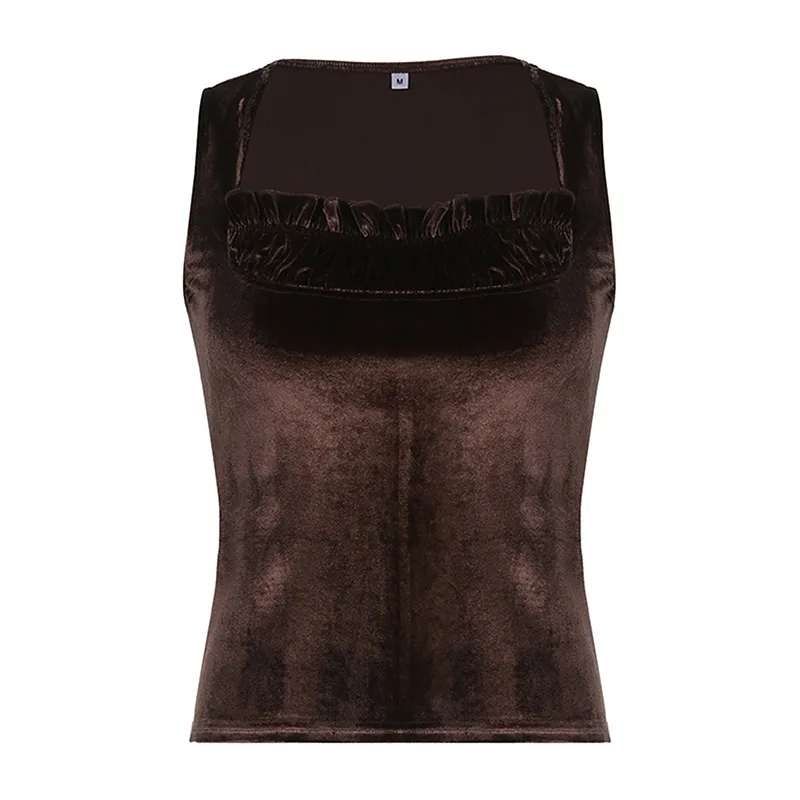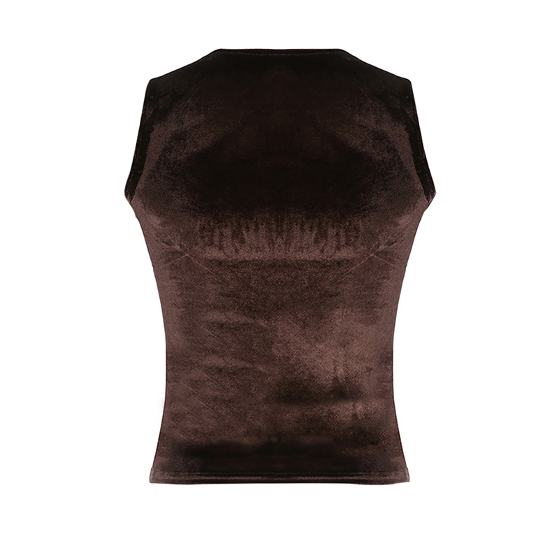 Brown Velvet Patchwork Tank Top