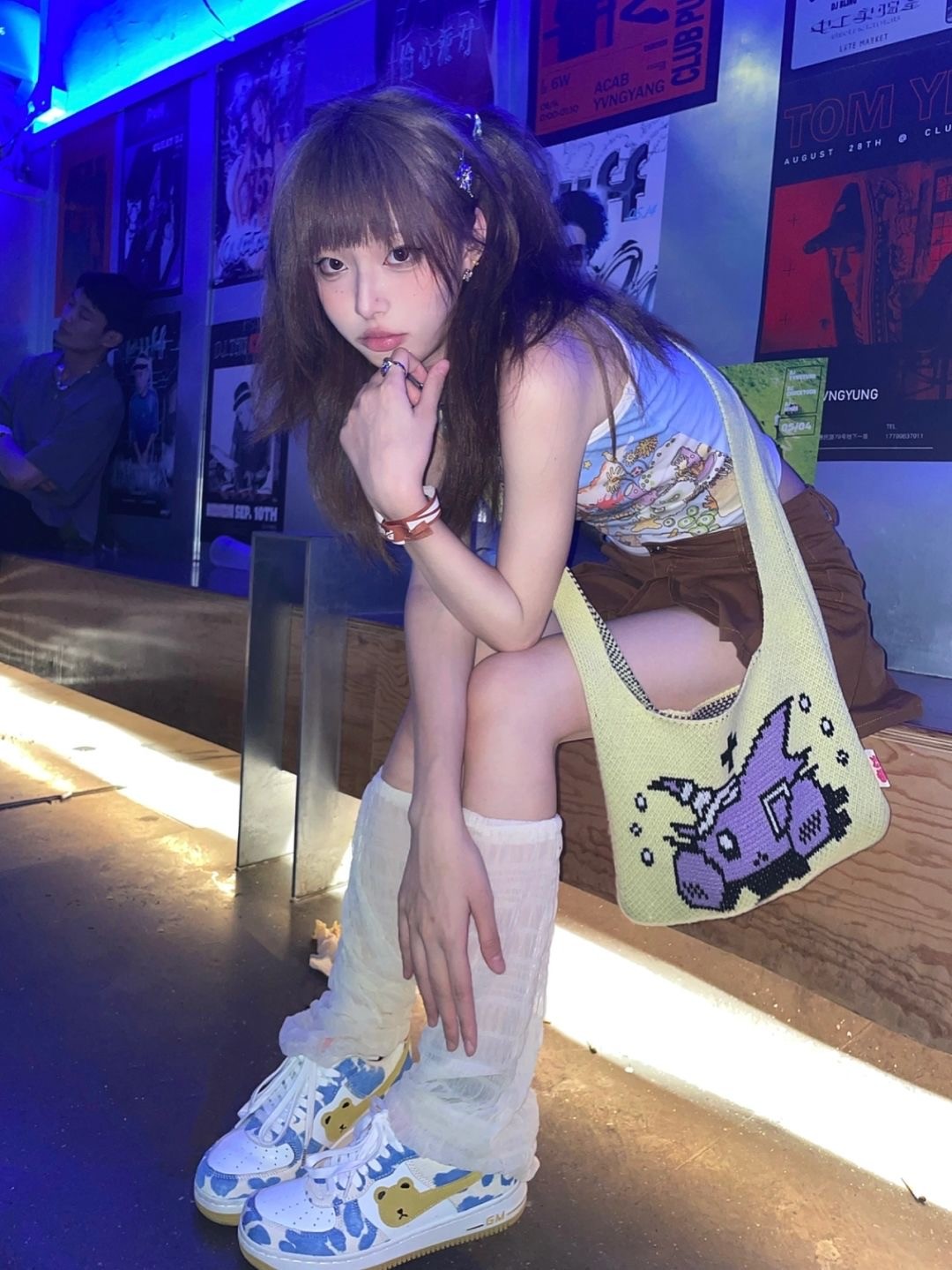 Brown Japanese Anime Cartoon Print Crop Top