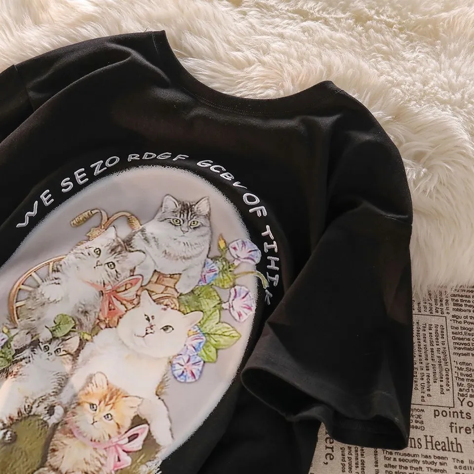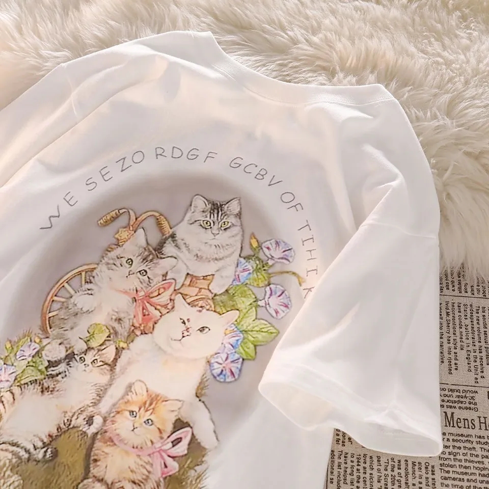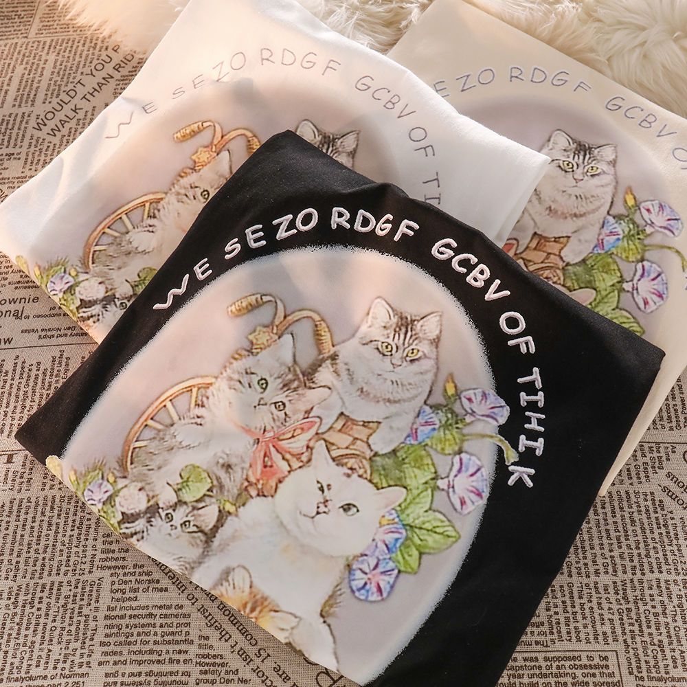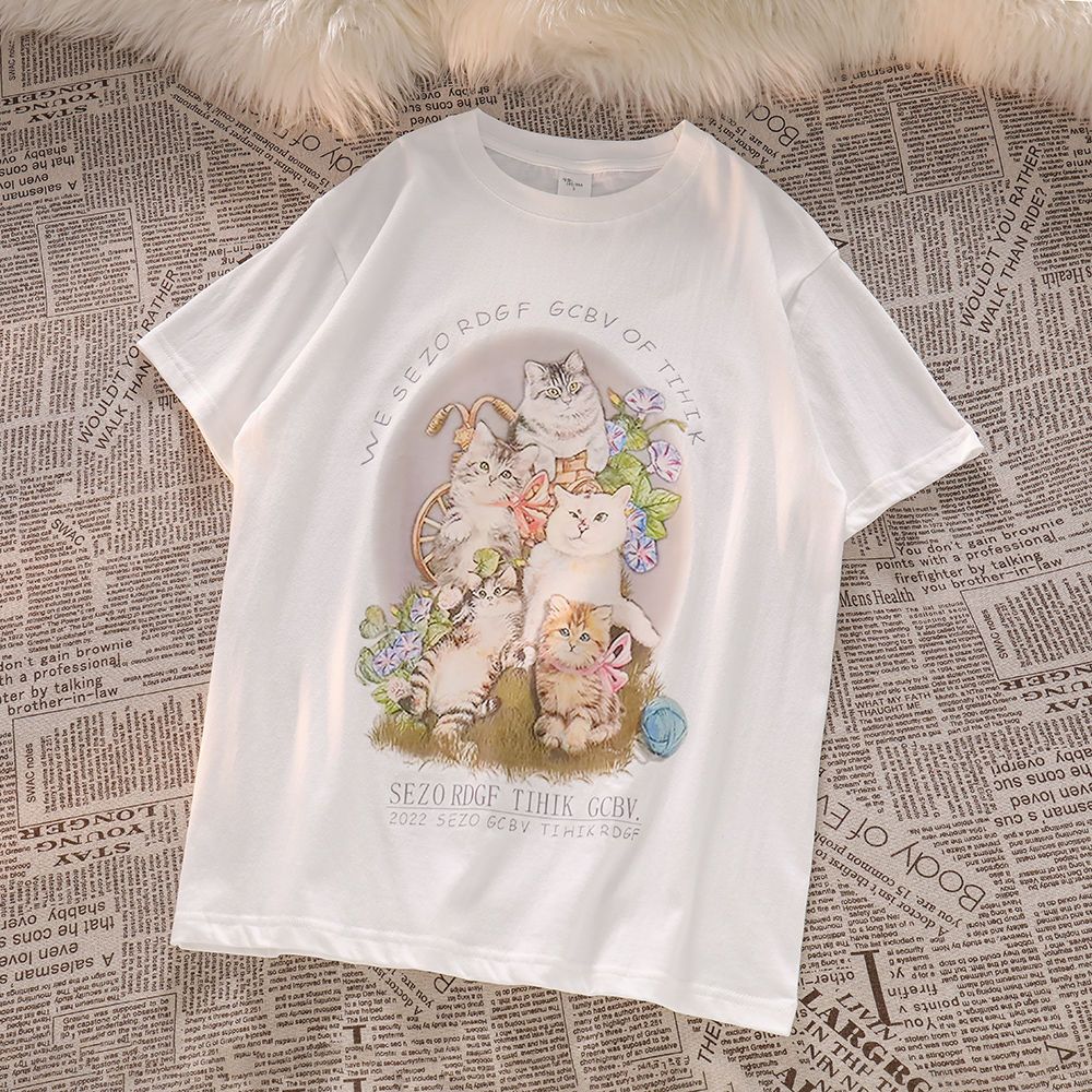 Cat Print Short Sleeve T-shirt