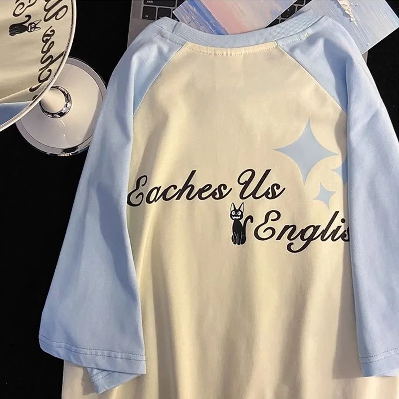 Cute Pink Cherry Fruit Embroidery Crop Top Long Sleeve Shirt T-shirt Causal Tee Summer E-Girl Kawaii Korean Japanese Harajuku Streetwear
