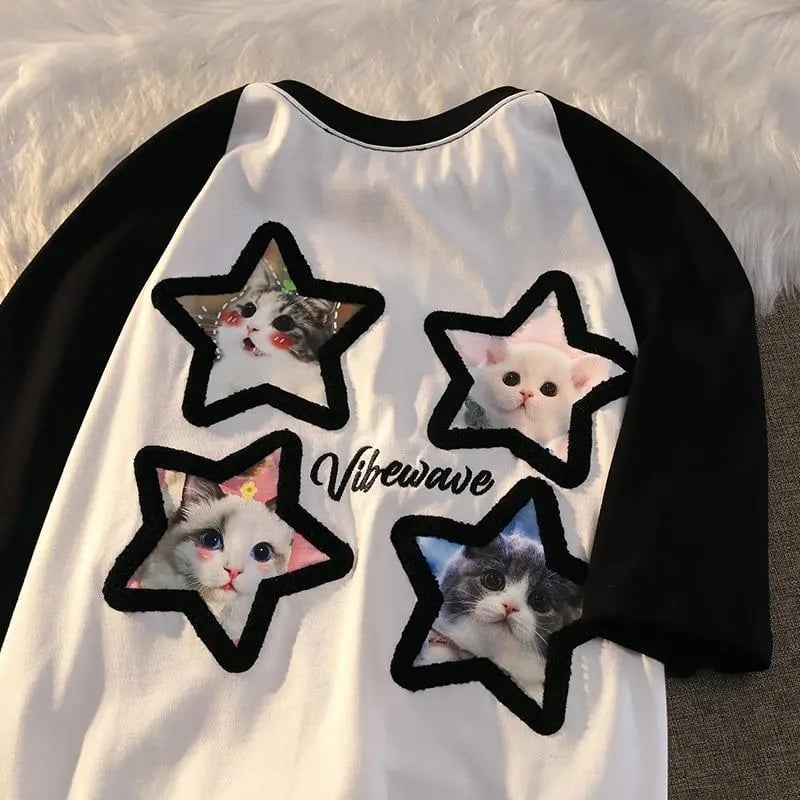 Pink Kawaii Cat Patchwork Short Sleeve T-shirt