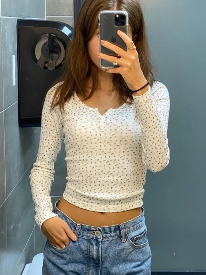 Cute Face Asymmetrical White Long Sleeve Shirt Tee T-shirt Top Blouse E-Girl Kawaii Korean Japanese Harajuku Retro Streetwear Aesthetic