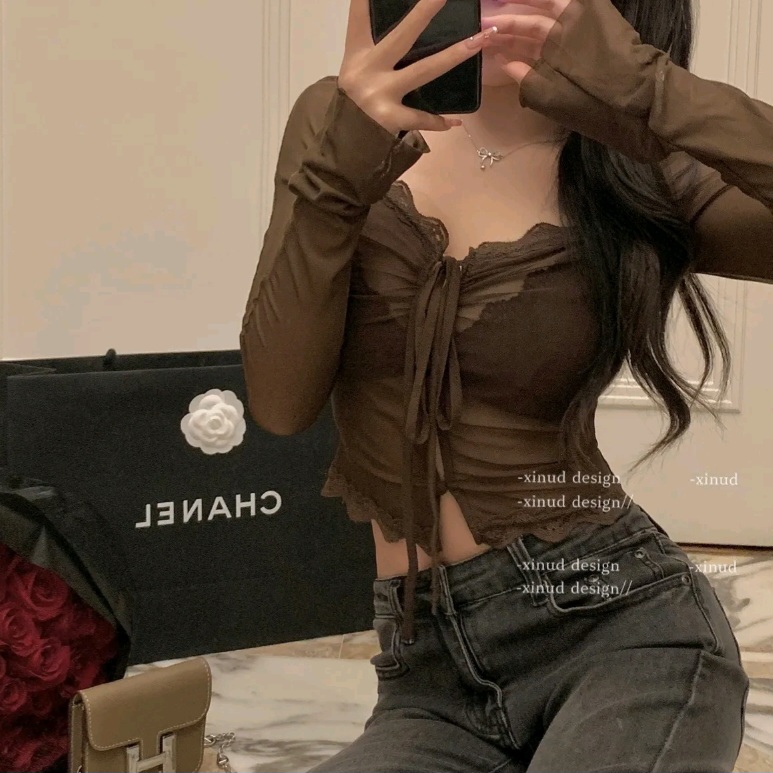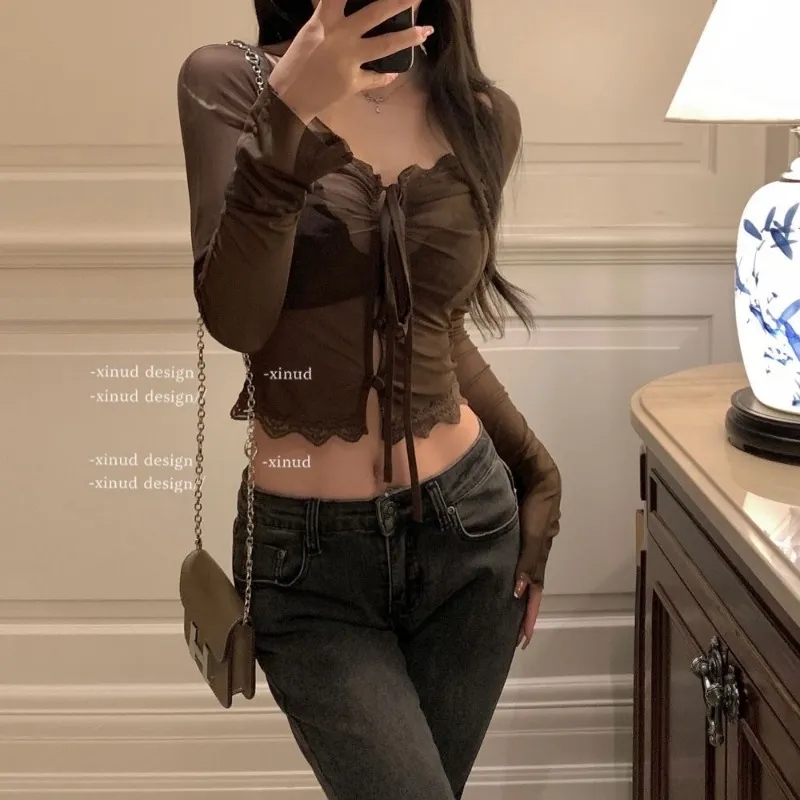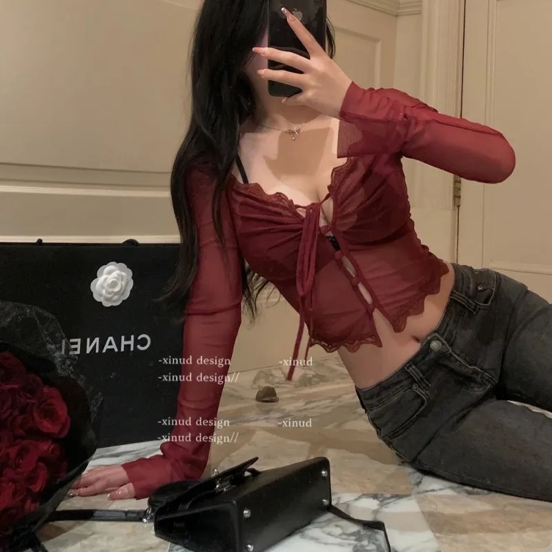 Red Lace See Through Blouse