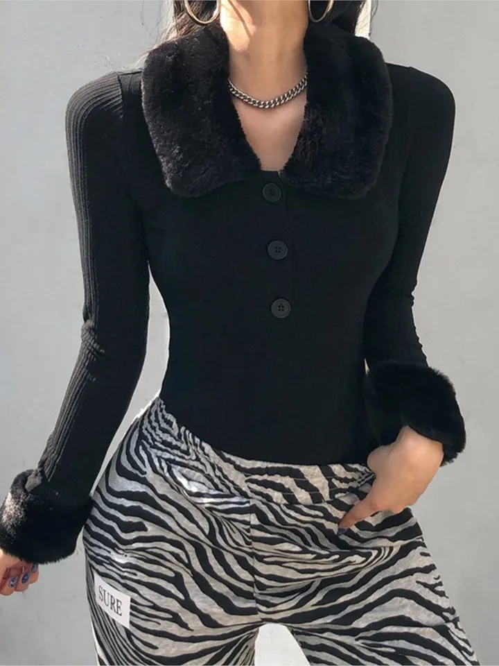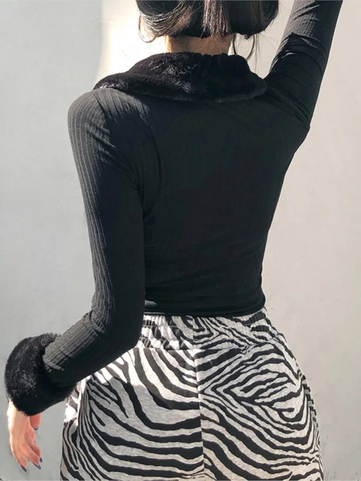 Cute Black Vertical Stripe Buckle Off Shoulder Long Sleeve Shirt Blouse Aesthetic Casual E-Girl Kawaii Korean Japanese Harajuku