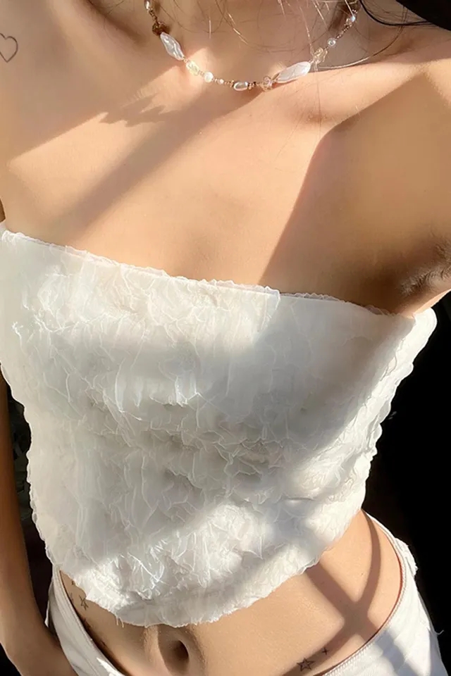 White Frill Strapless Top