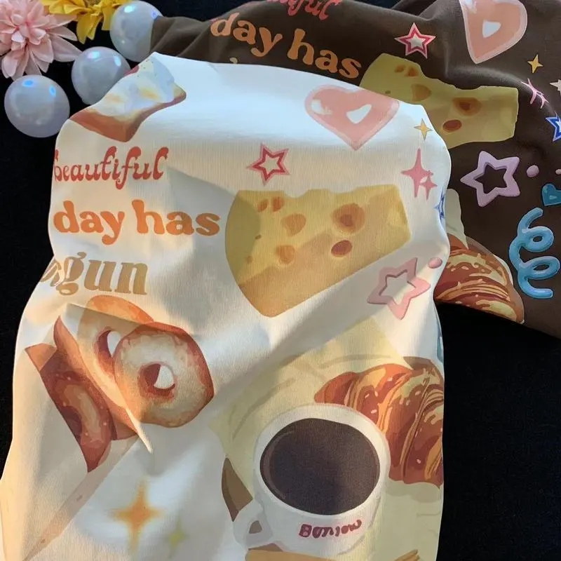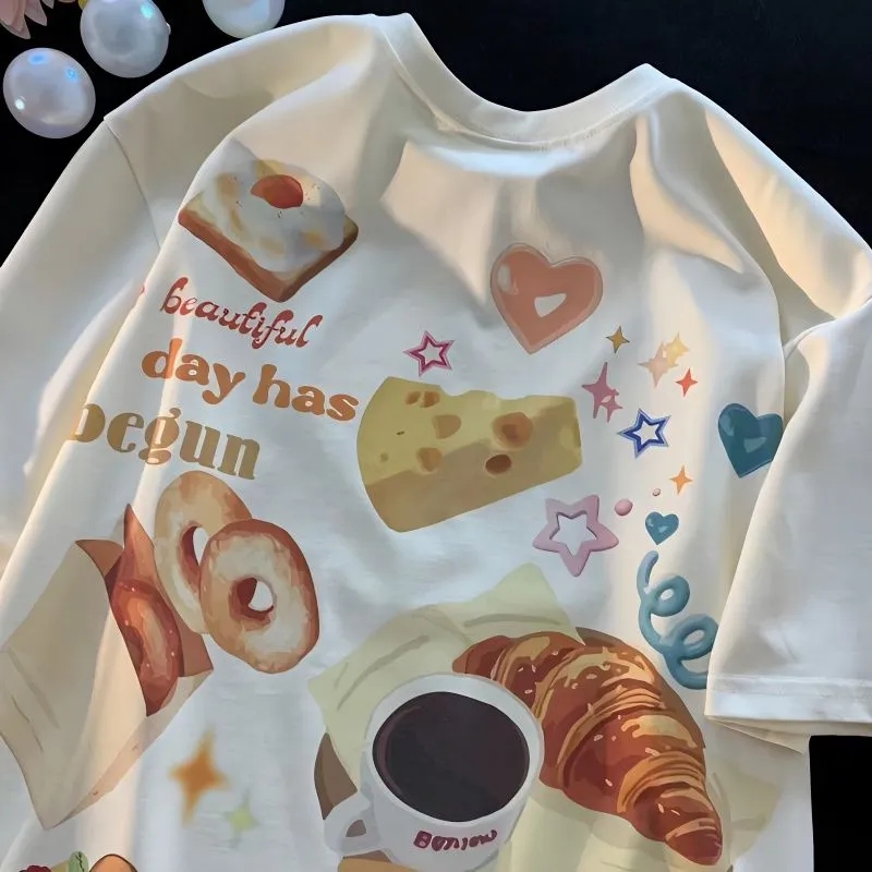Brown Baked Food Print Short Sleeve T-shirt