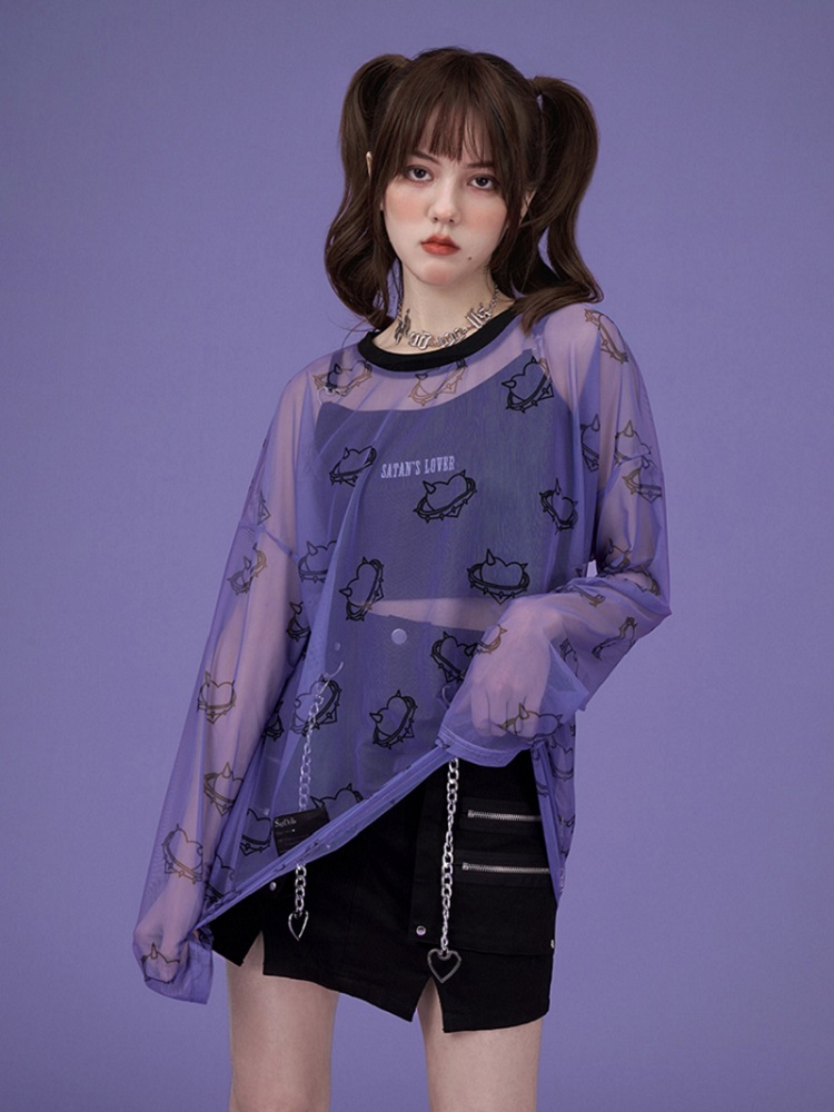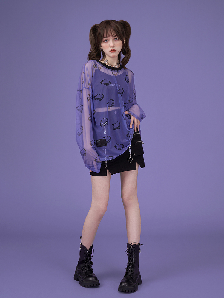 Cute Rainbow Cool Letter Embroidery Aesthetic Sweatshirt Long Sleeve Shirt Turtleneck Top Casual E-Girl Kawaii Korean Japanese Harajuku Streetwear