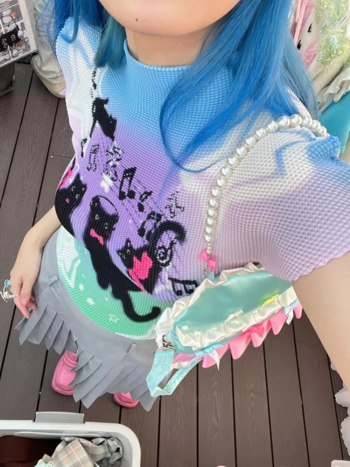 Rainbow Cat Graffiti Short Sleeve Shirt
