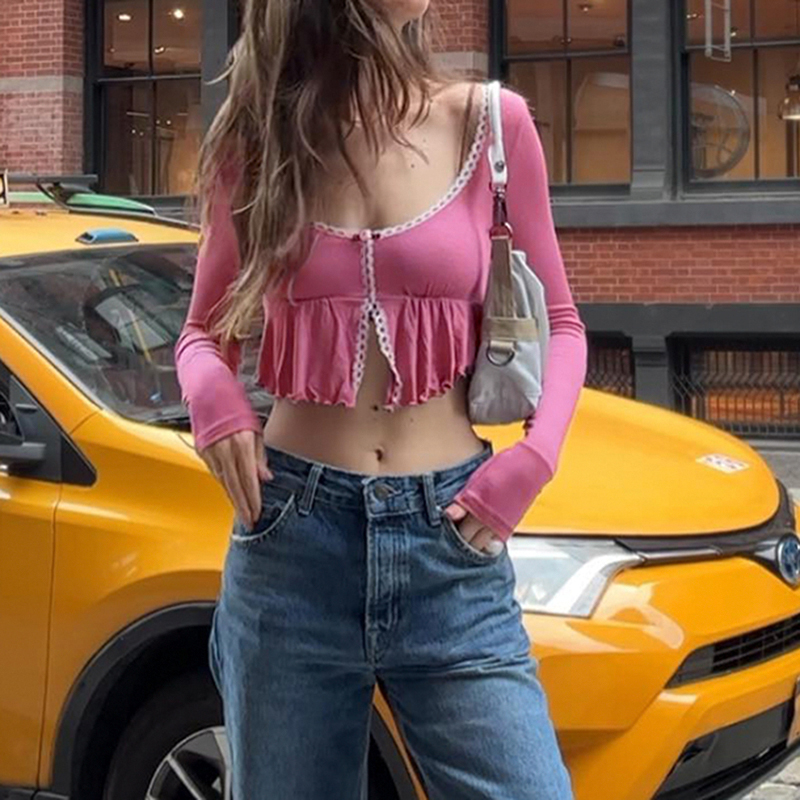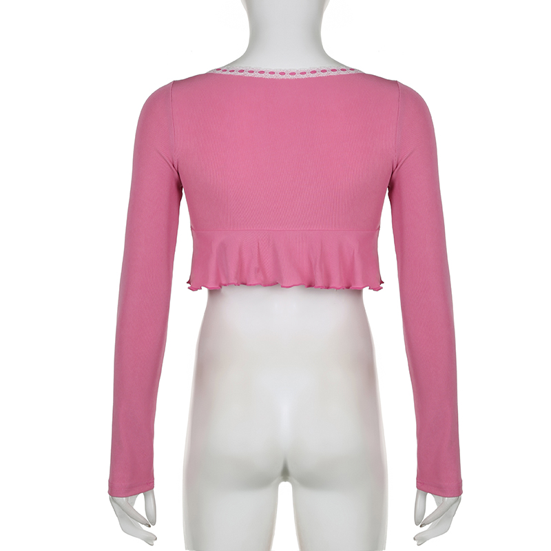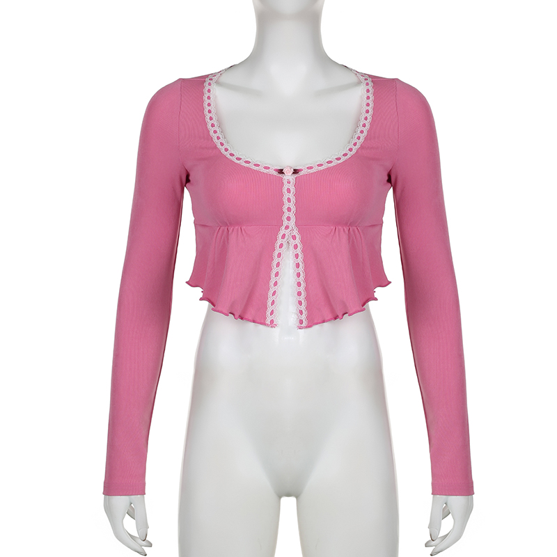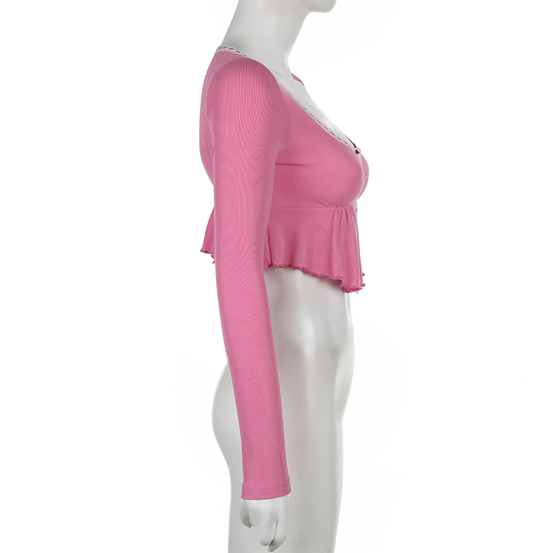 Cute Lace Patchwork V Neck Crop Top Short Sleeve Shirt Tee T-shirt E-Girl Kawaii Korean Japanese Harajuku Chinese Retro Streetwear Aesthetic