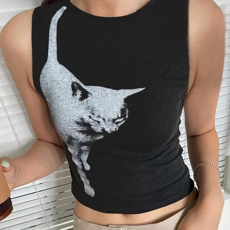 Cute White Graffiti Anime Girl Cat Cartoon Print Oversized Short Sleeve Shirt Punk Aesthetic Casual E-Girl Kawaii Korean Japanese Harajuku