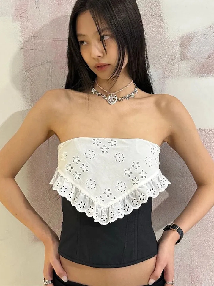 Cute Sexy Cherry Crystal Fluffy Fur Crop Top Off the Shoulder Tube T-shirt Tee Shirt E-Girl Kawaii Korean Japanese Harajuku Retro Streetwear Fashion
