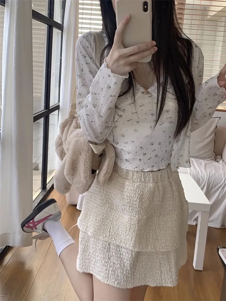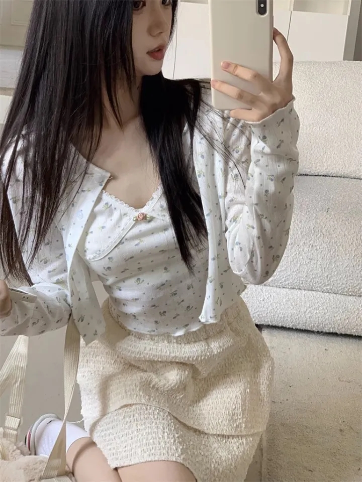 100% Brand New and High Quality . Material: Polyester, Cotton. Size: As shown on size chart. Includes: Top + Cardigan.