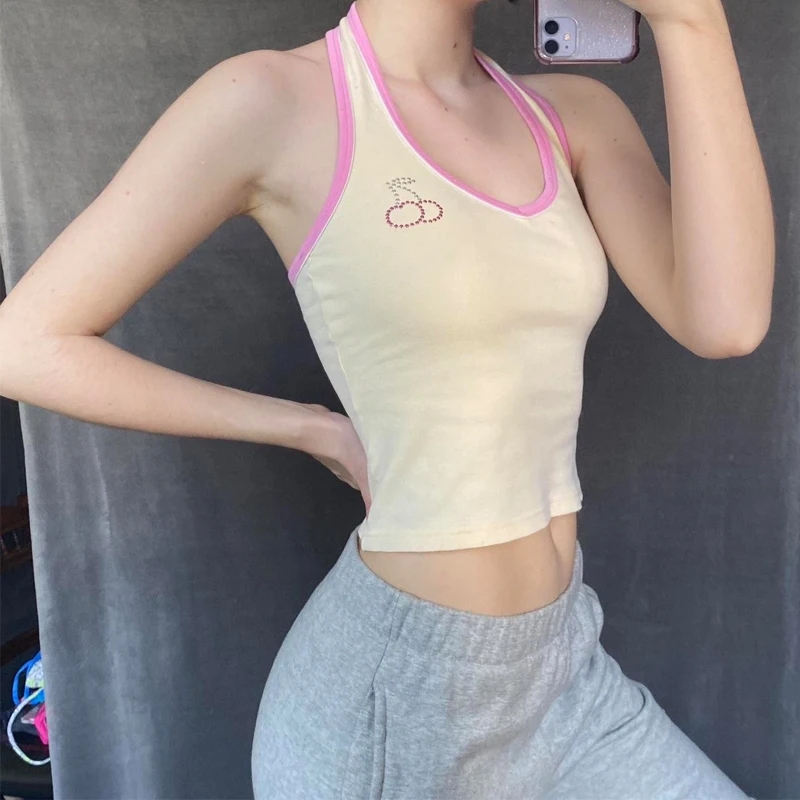 Cherry Rhinestone Patchwork Tank Top