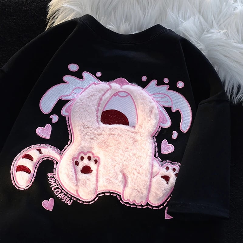 Cute Sexy Pink Lace Up Fluffy Fur Crop Top Camisole Tank Spaghetti T-shirt Tee Shirt E-Girl Kawaii Korean Japanese Harajuku Retro Streetwear Fashion