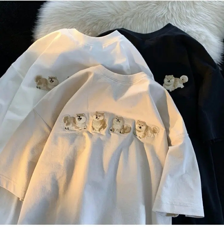 Funny Shiba Embroidery Short Sleeve T-shirt