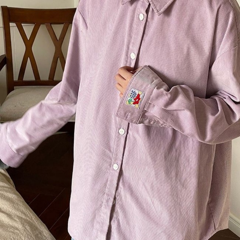 Pink Teddy Bear Patchwork Long Sleeve Shirt