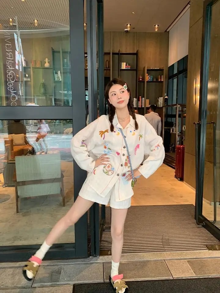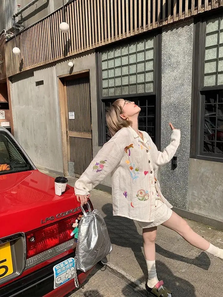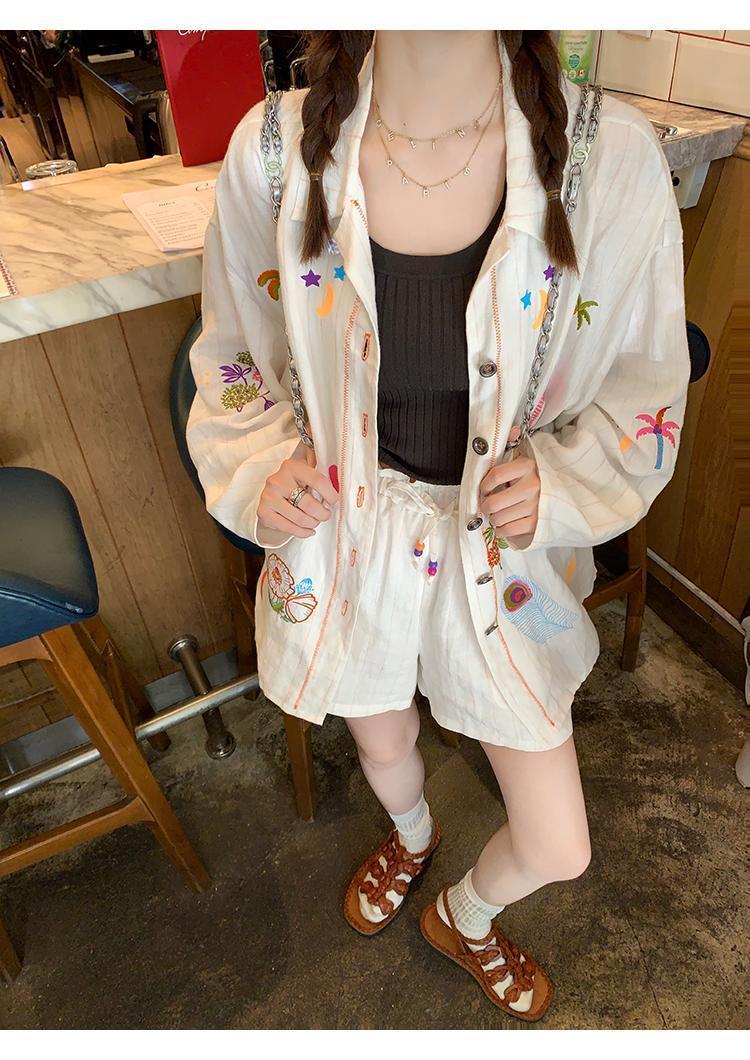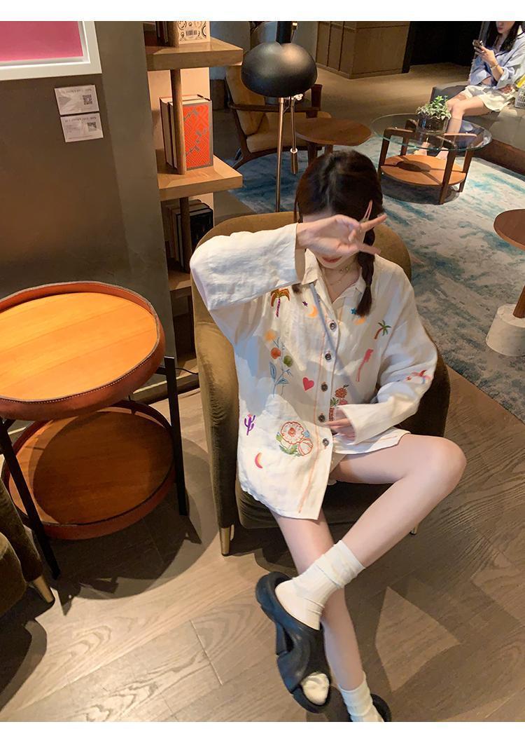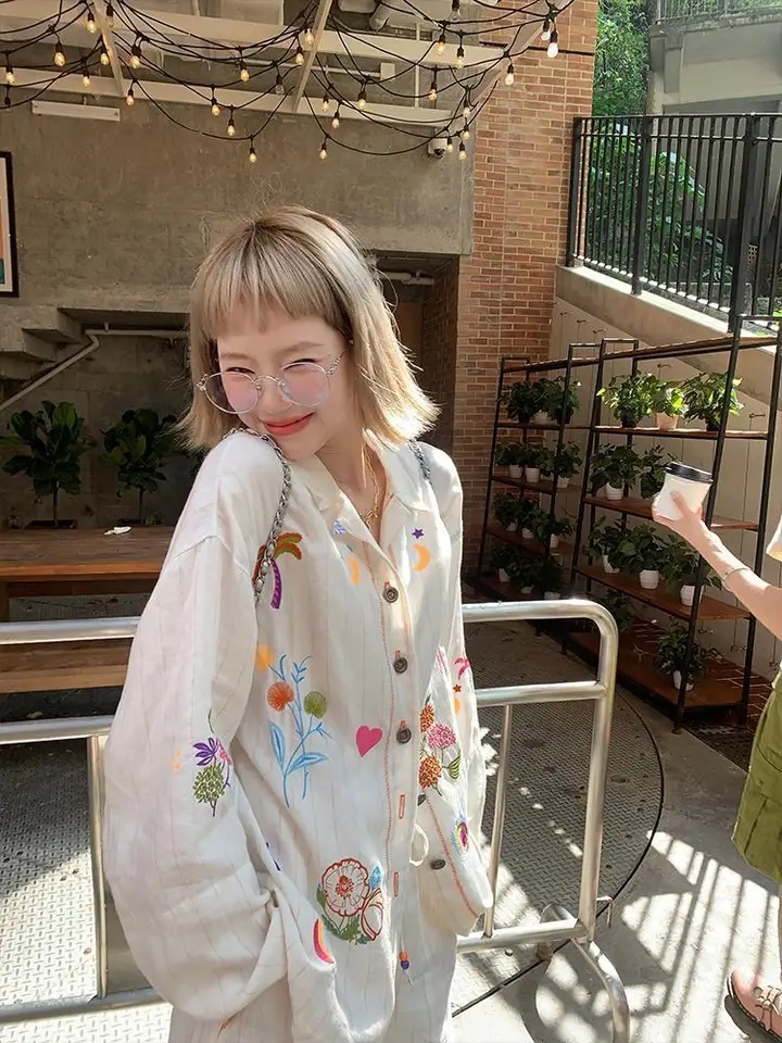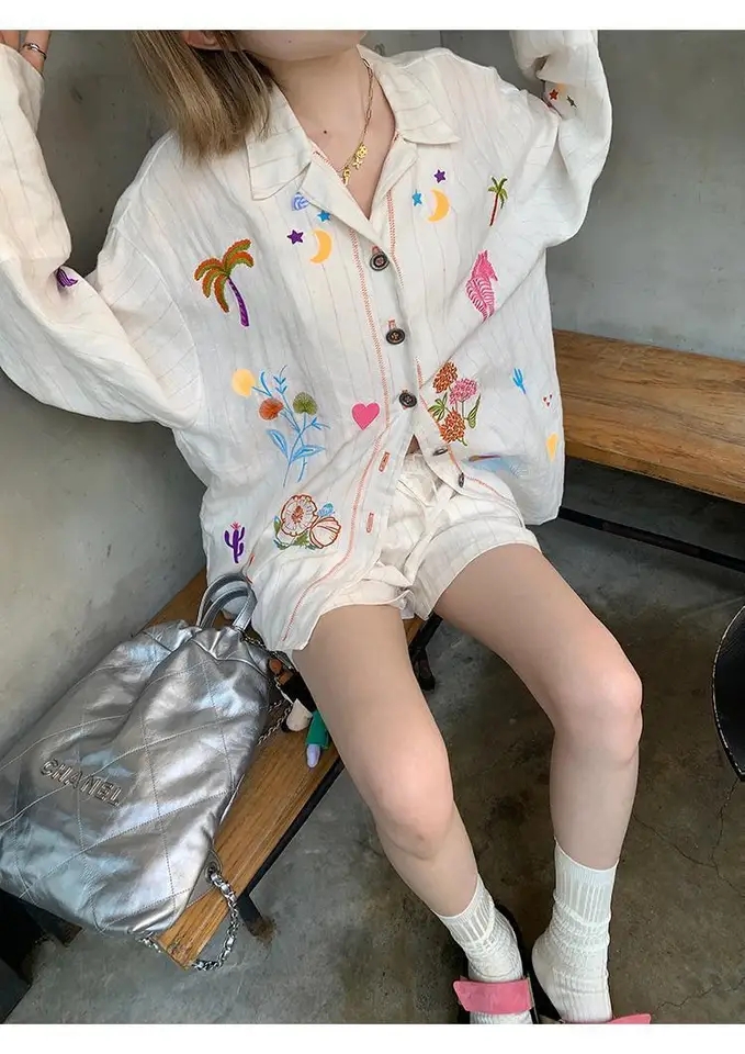 Sweet Embroidery Stripe Long Sleeve Blouse