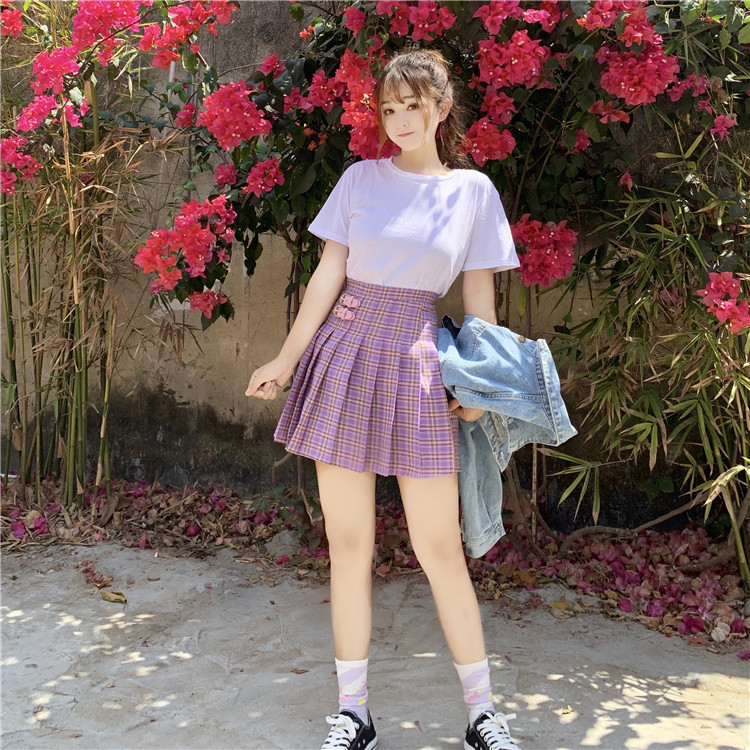 Cute Preppy Purple Plaid High Waisted Mini Skirt Summer Casual School Girl E-Girl Kawaii Korean Japanese Harajuku Streetwear