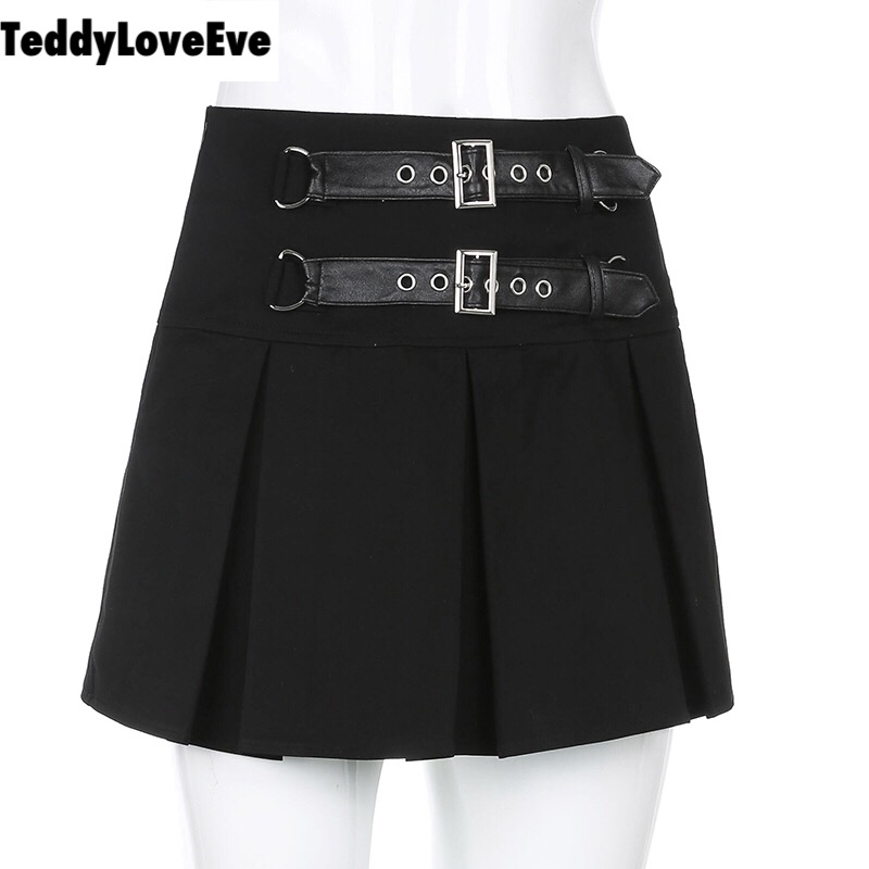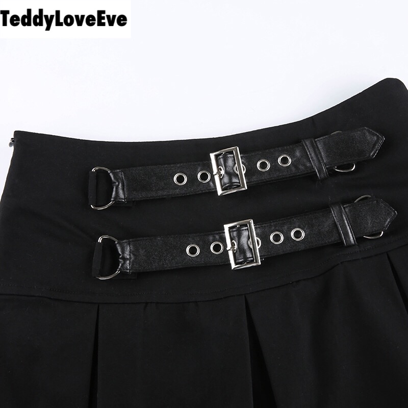 Cute Goth Dark Grunge Punk Pleated High Waisted Rivet Patchwork Mini Skirt Bottoms E-Girl Kawaii Korean Japanese Harajuku Streetwear