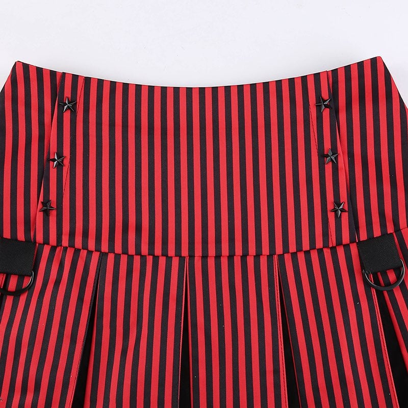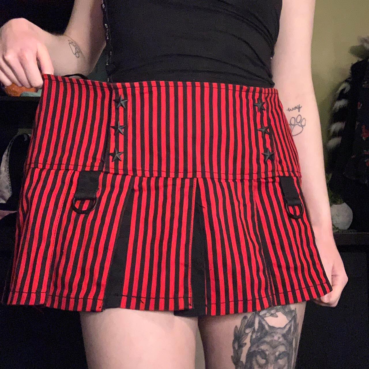 Vintage 90s Red Plaid Striped Pleated Low Waisted Skirt Academia E-Girl Kawaii Korean Japanese Harajuku Streetwear