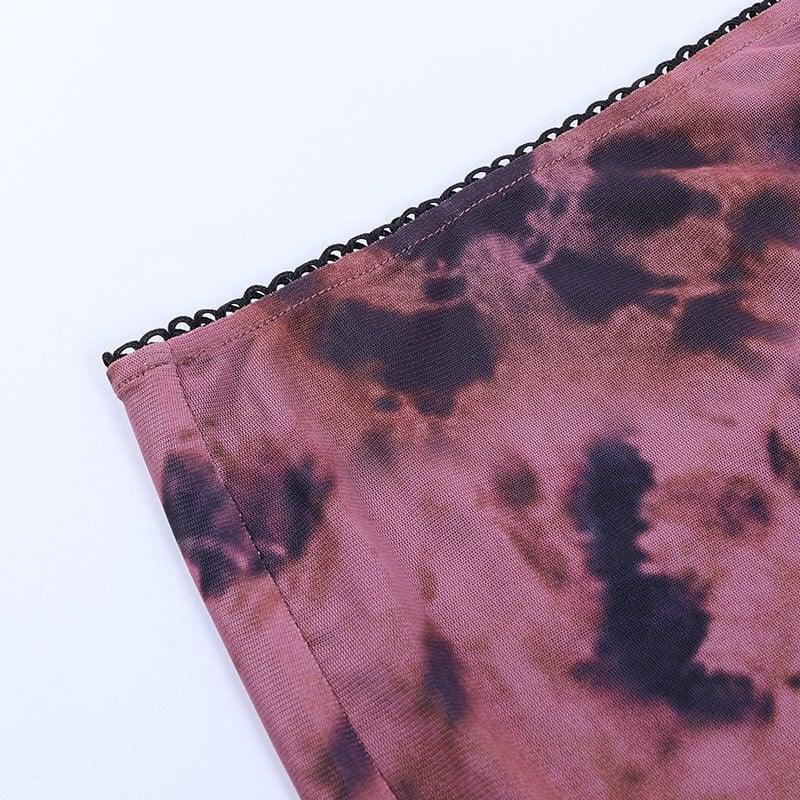 Cute Sexy 90s Retro Vintage Tie Dye Mesh Ruffle Trim A-line Mini High Waisted Skirt Aesthetic Goth E-Girl Kawaii Korean Japanese Harajuku Streetwear