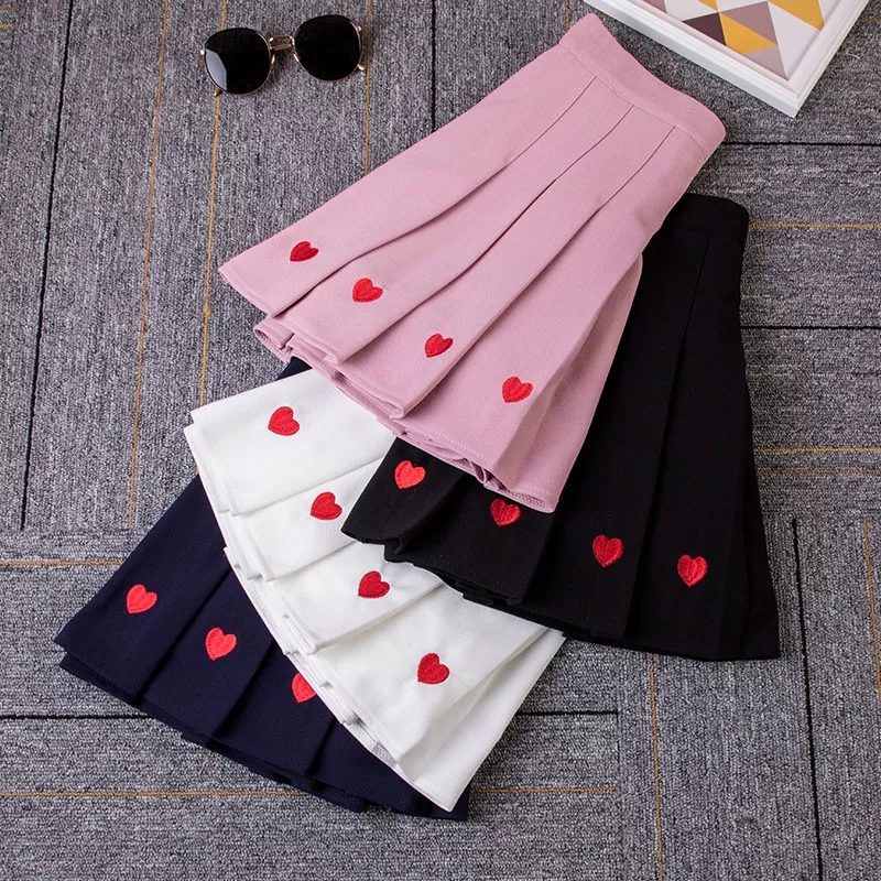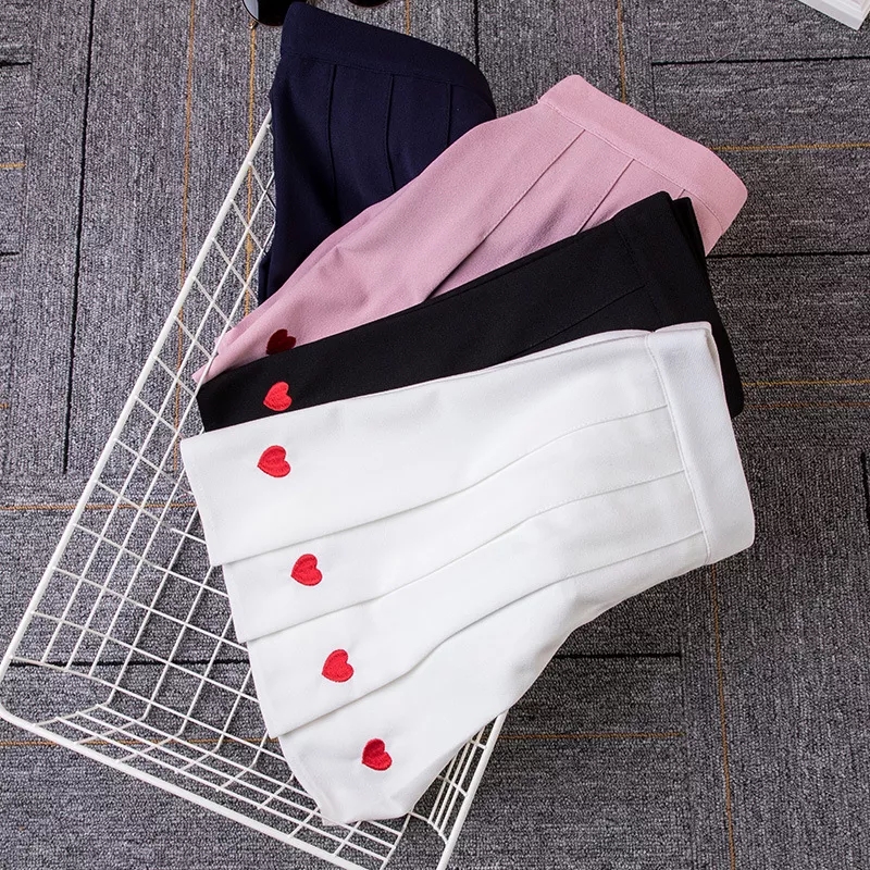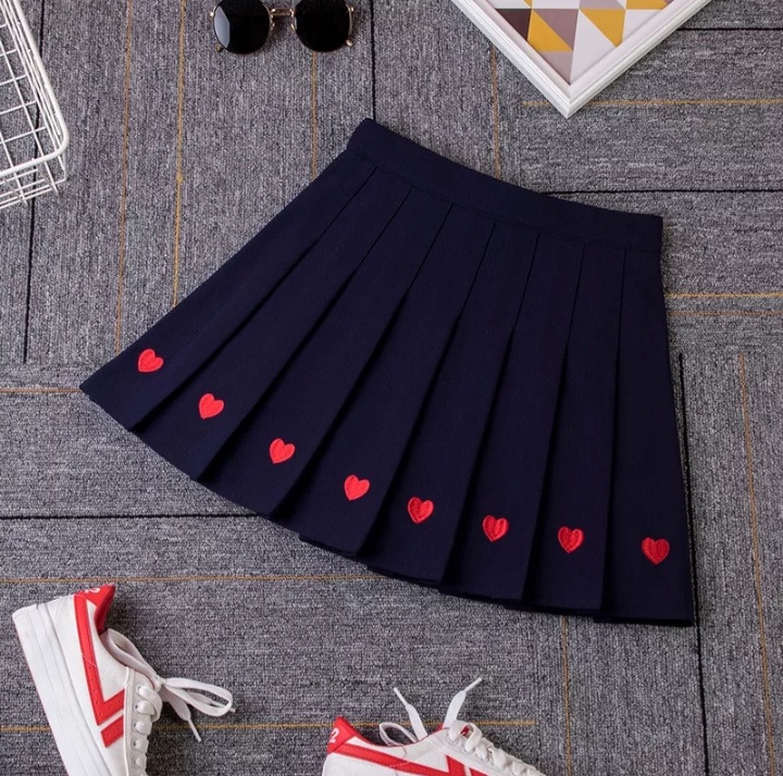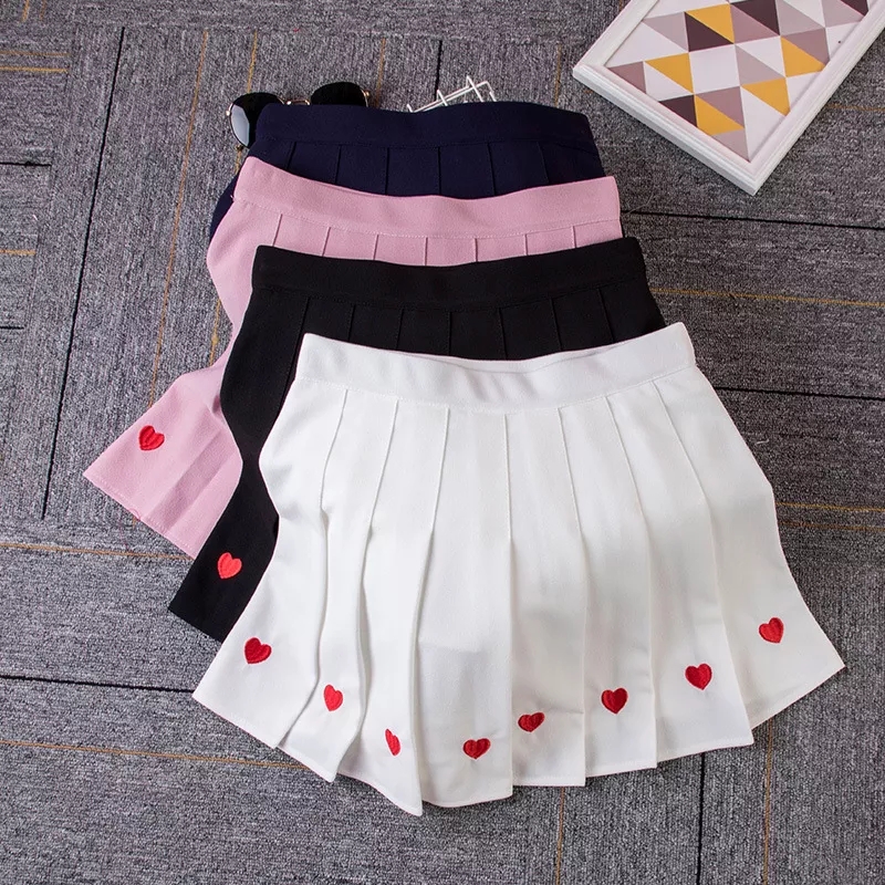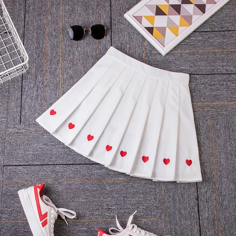 Cute Love Heart Pleated High Waist A-line Mini Skirt Summer Aesthetic Casual E-Girl Kawaii Korean Japanese Harajuku