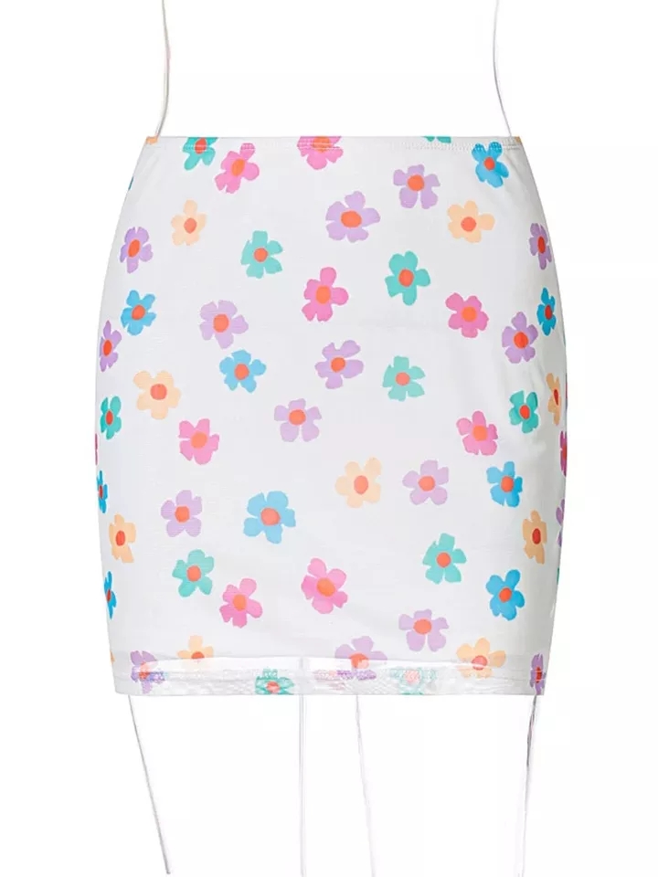 Sweet 90s Floral Mesh Mini Skirt Aesthetic Casual E-Girl Kawaii Korean Japanese Harajuku