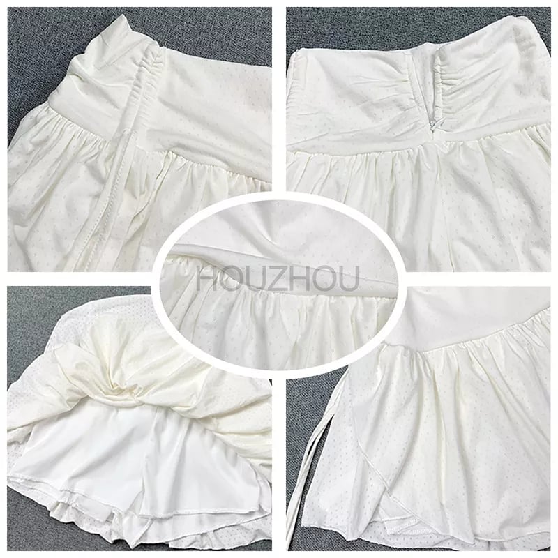 White Ruffle Drawstring High Waist Mini Skirt Fairycore Aesthetic Casual E-Girl Kawaii Korean Japanese Harajuku