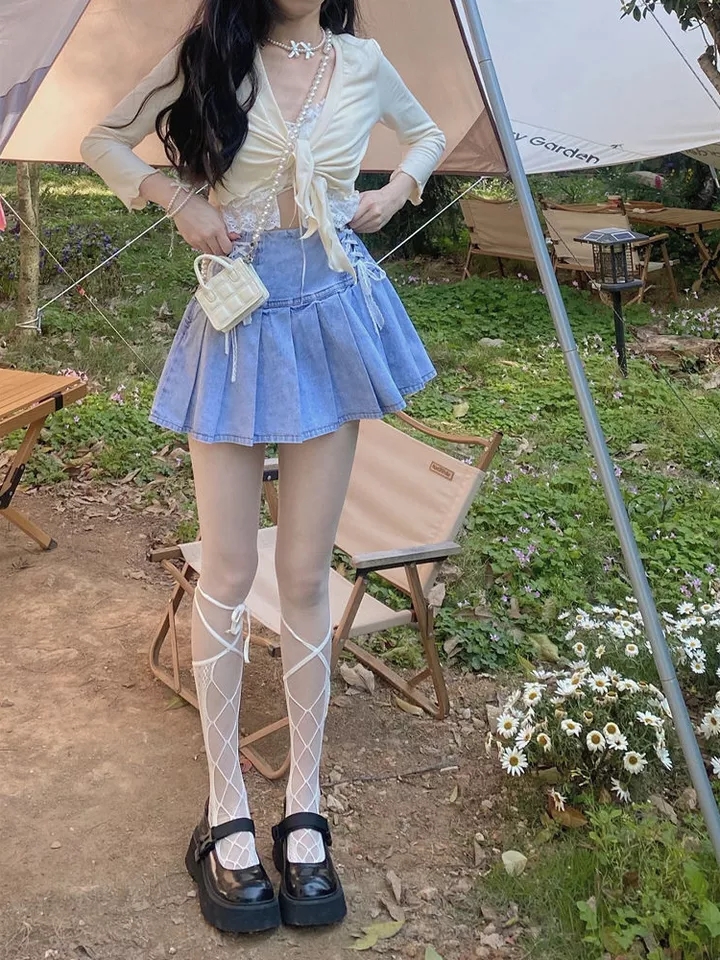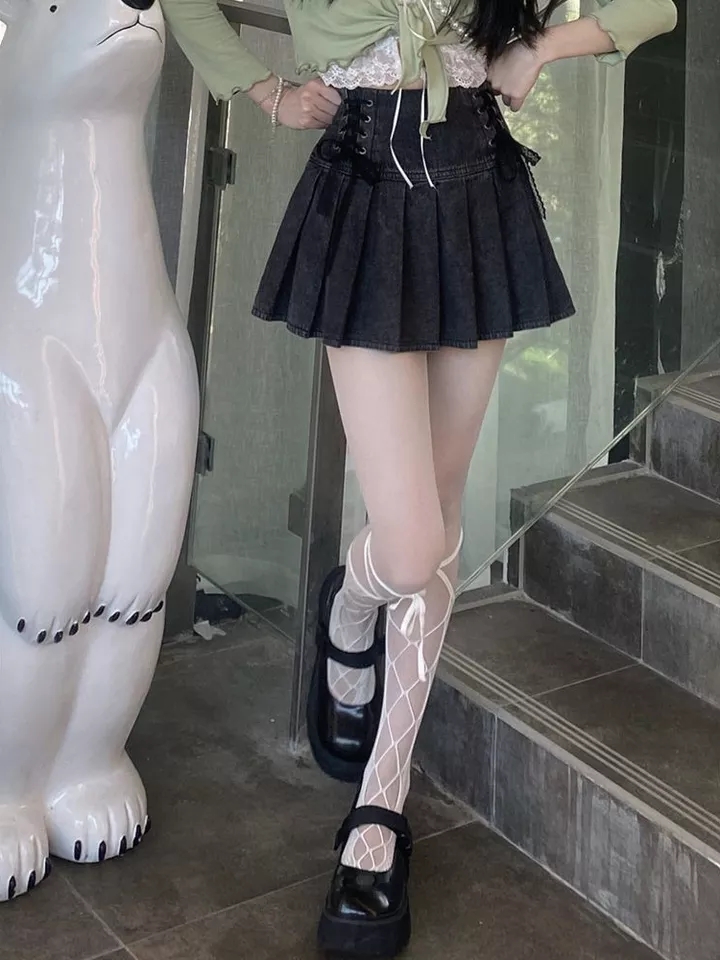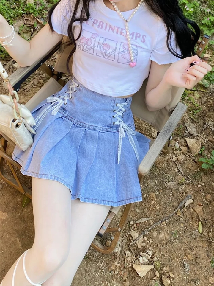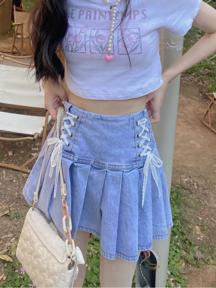 Sweet Lace Pleated School Girl Skirt High Waisted E-Girl Kawaii Korean Japanese Harajuku Streetwear