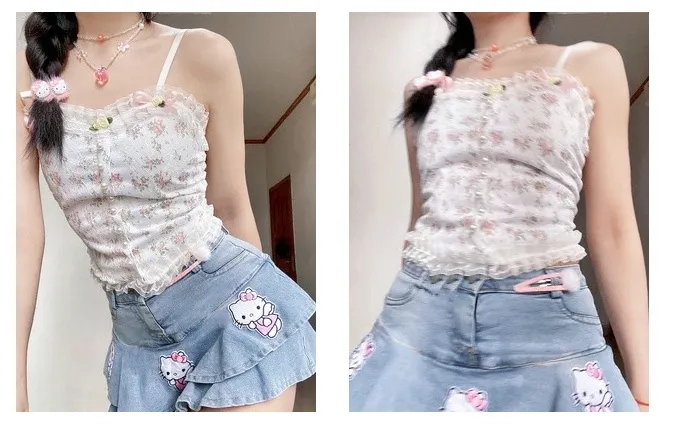 Cute Vintage Lace Trim Ribbon Bow Tie Up Pleated High Waisted Skirt Punk Goth E-Girl Kawaii Korean Japanese Harajuku Streetwear