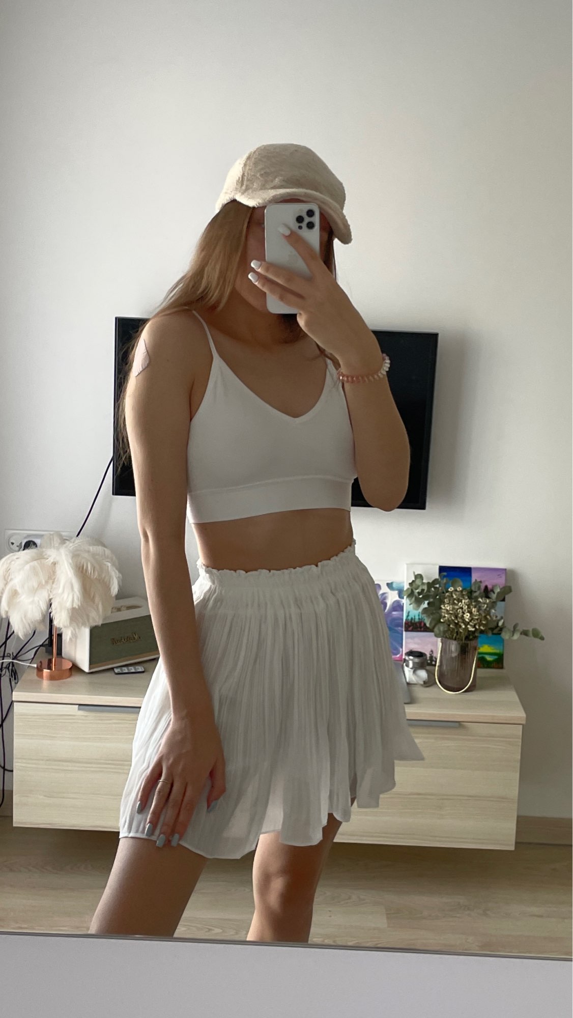 2PCS White Soft Zipper Hoodie + Split Mini Skirt