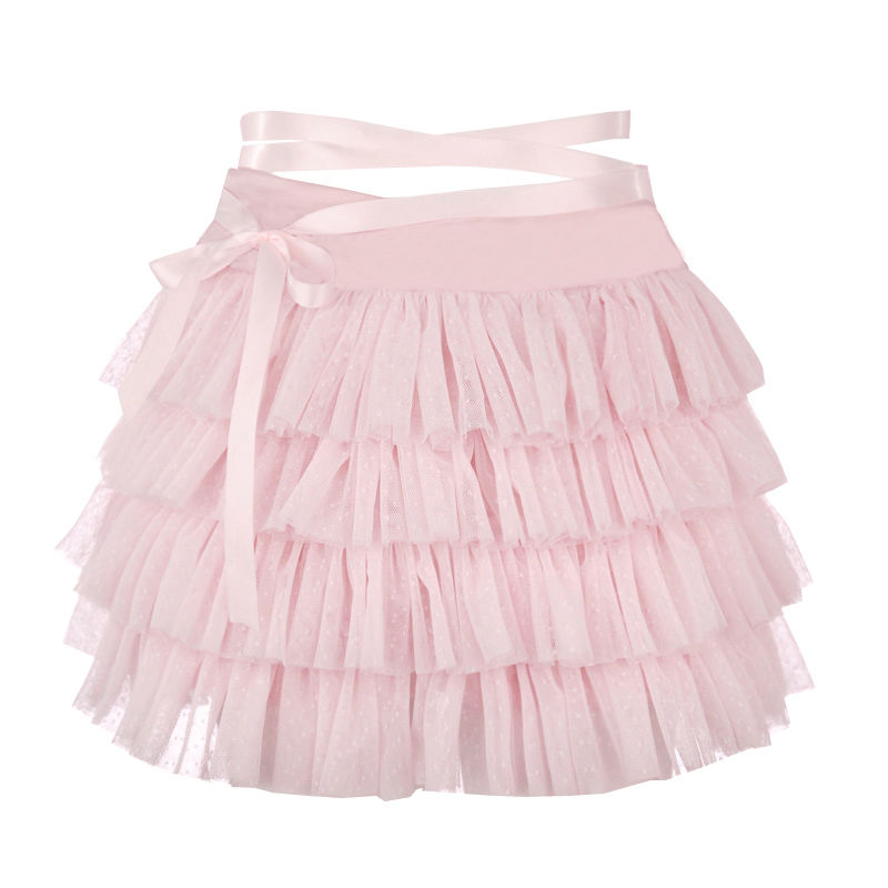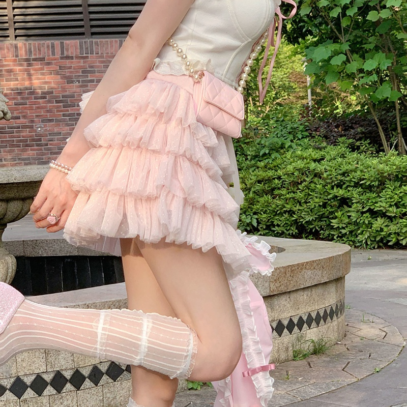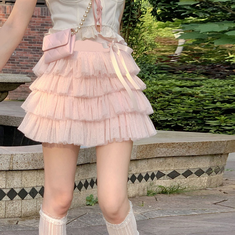 Sweet Bow Ruffle Layer Bandage A-Line Skirt