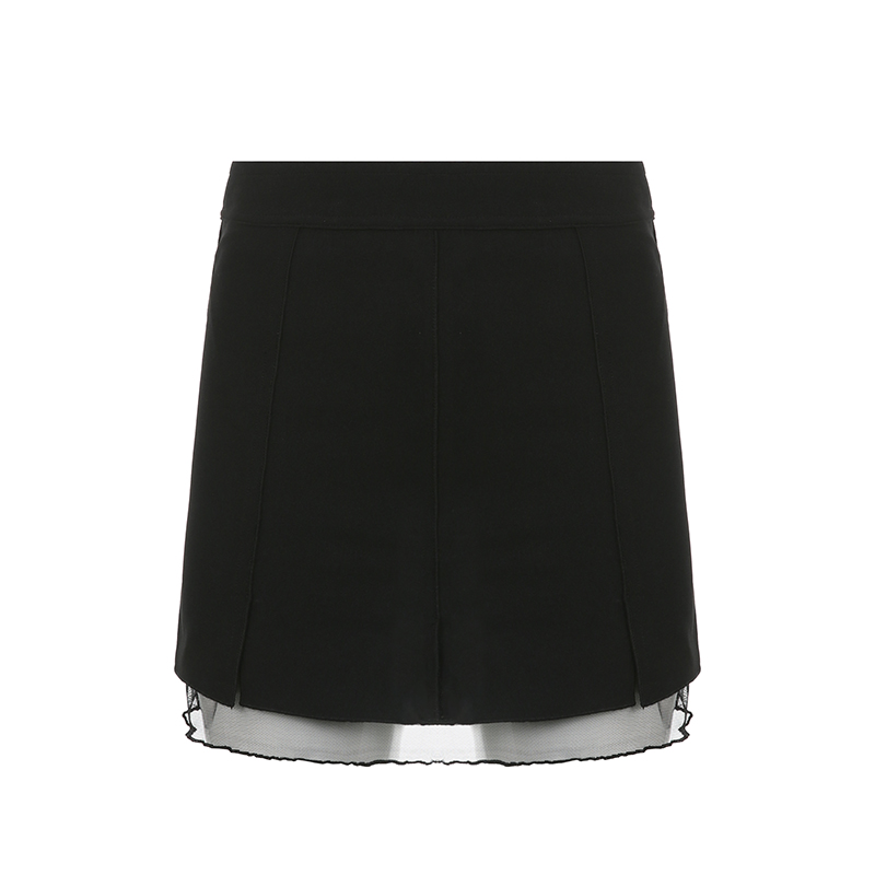 Cute White Black Chain Lace High Waist A-line Pleated Skirt Summer Aesthetic Casual E-Girl Kawaii Korean Japanese Harajuku