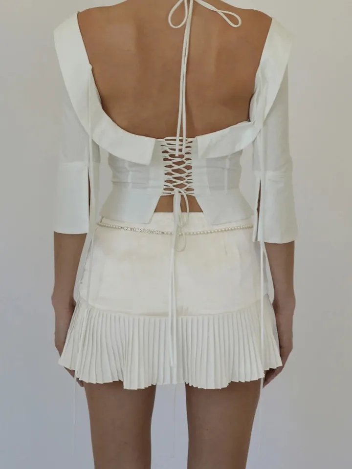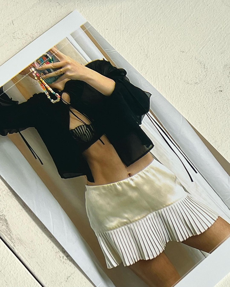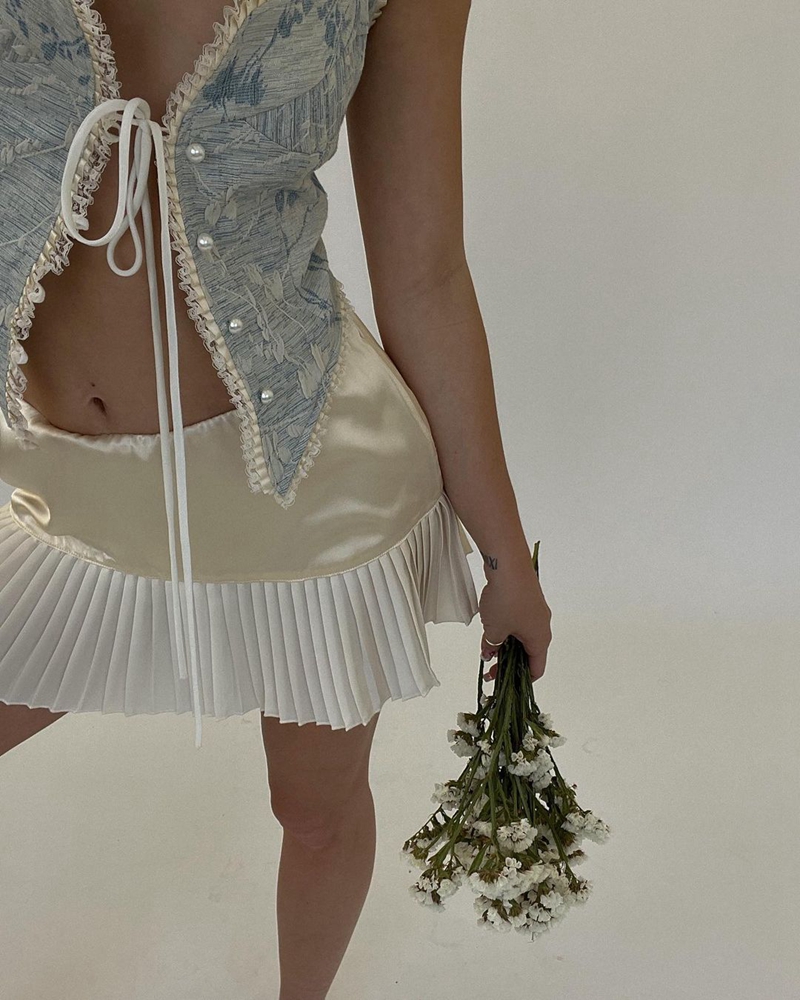 Cute Green Ribbed 2PCS Set Square Collar Puff Sleeve Lace Short Sleeve Crop Top Skirt Summer Party E-Girl Kawaii Korean Japanese Harajuku Streetwear