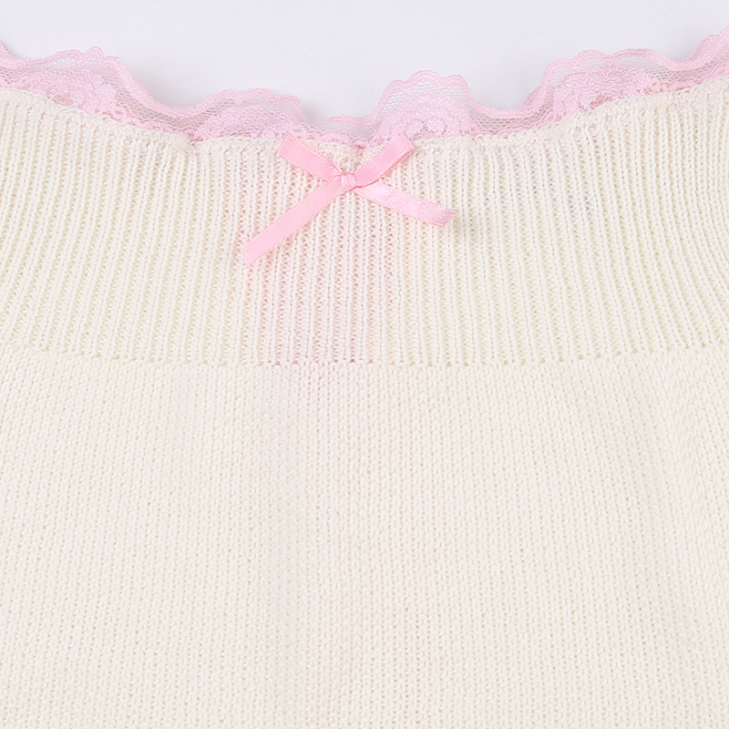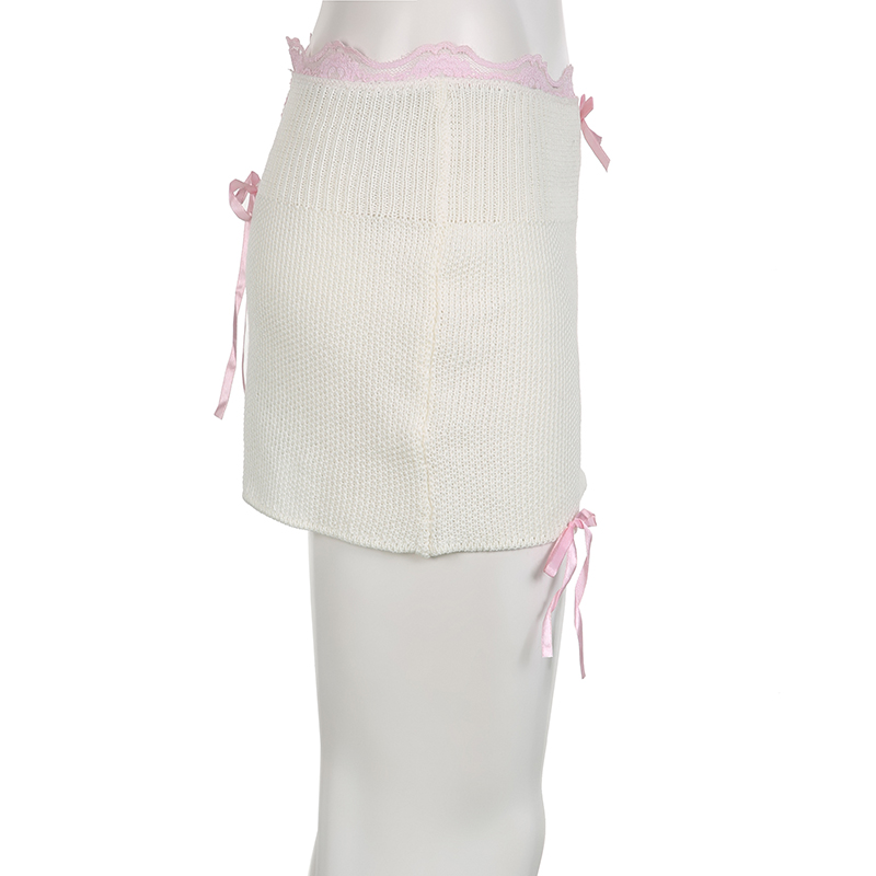 White Knit Bow Ribbed Trim Low Waist Mini Skirt