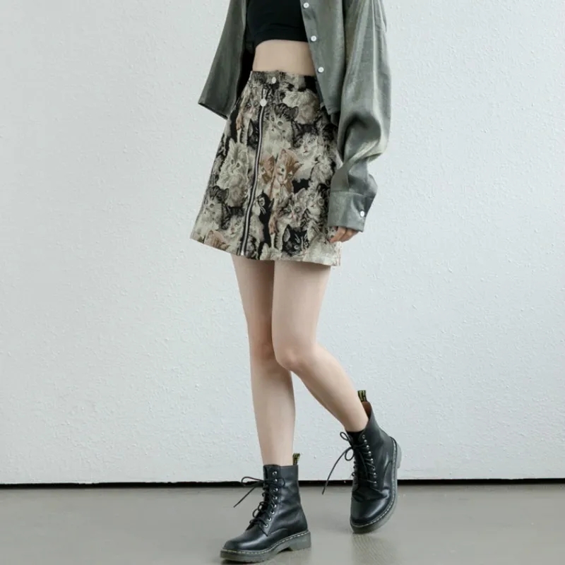 Cute Kpop Patchwork Buckle Cross Split High Waist Mini Skirt Goth Punk Streetwear Summer Aesthetic Casual E-Girl Kawaii Korean Japanese Harajuku